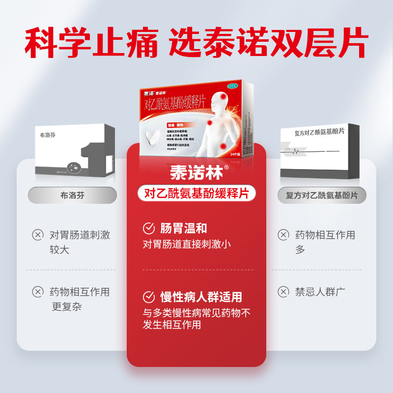 📚 泰诺林对乙酰氨基酚头痛退热缓释片牙痛肌肉关节去痛18片成人原研