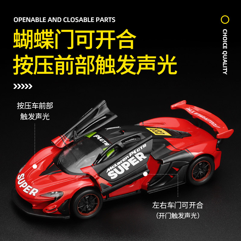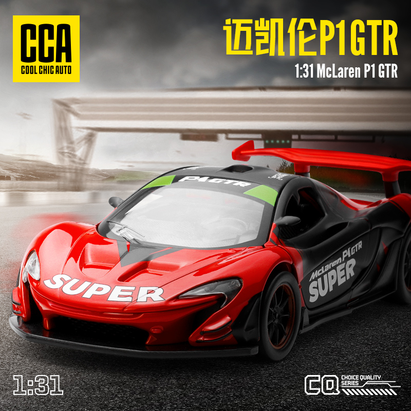 📚 彩珀成真1:31CCA合金红色迈凯伦P1GTR赛跑车模型开门回力儿童玩具