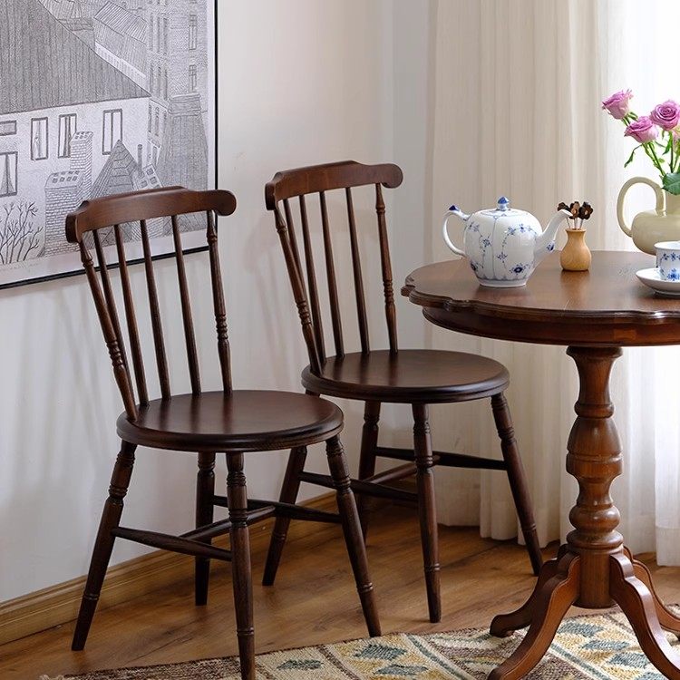 📚 艾温莎椅中复古实木法式网红靠背侘寂风设计师咖啡店甜品餐桌椅子
