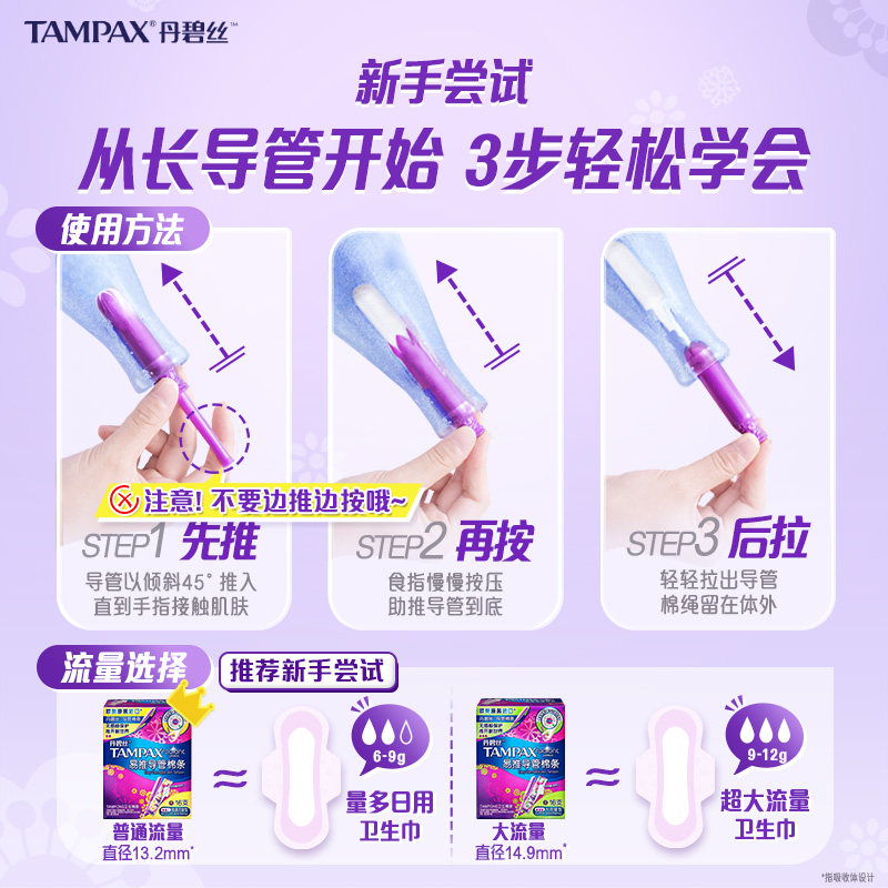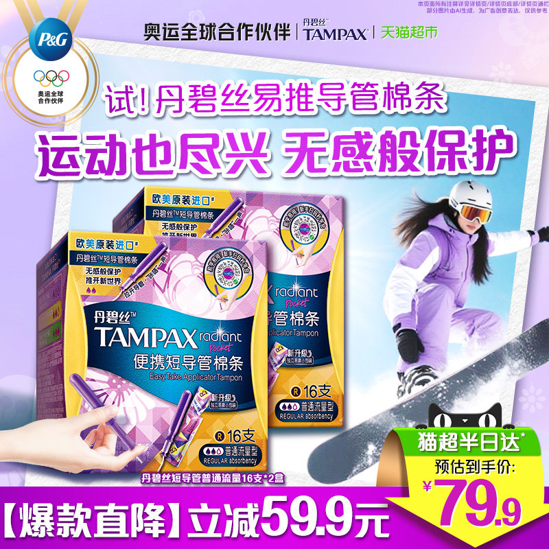 📚 丹碧丝易推导管式卫生棉条便携短导管式普通流量32支官方正品