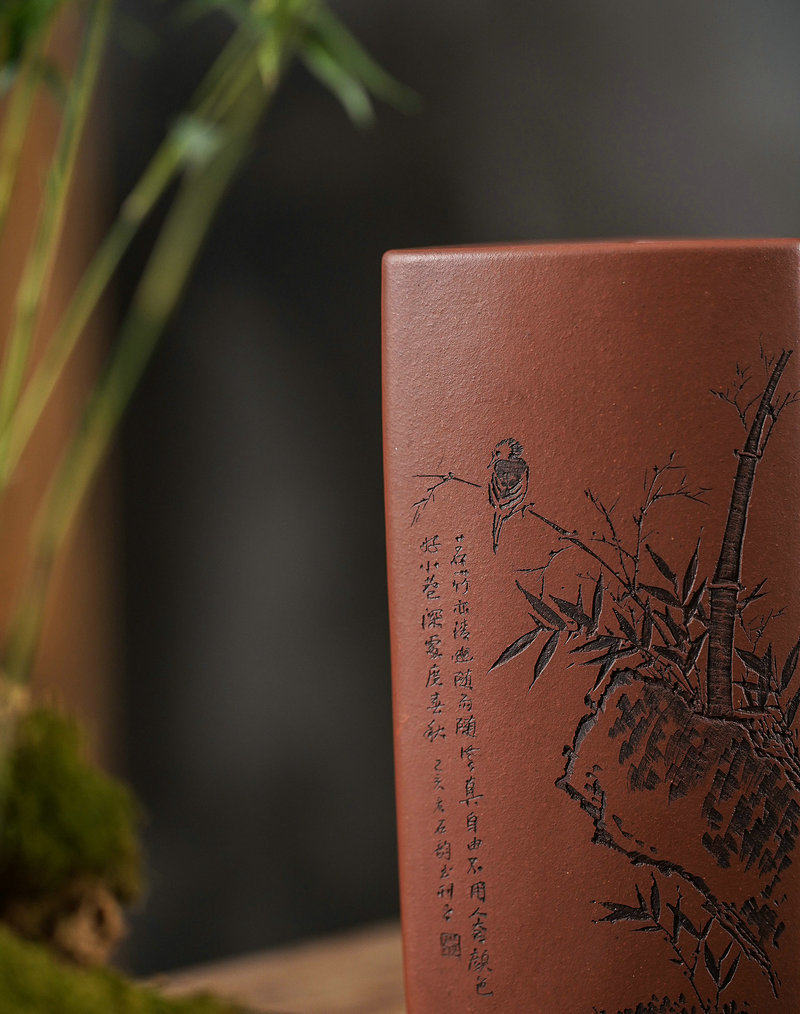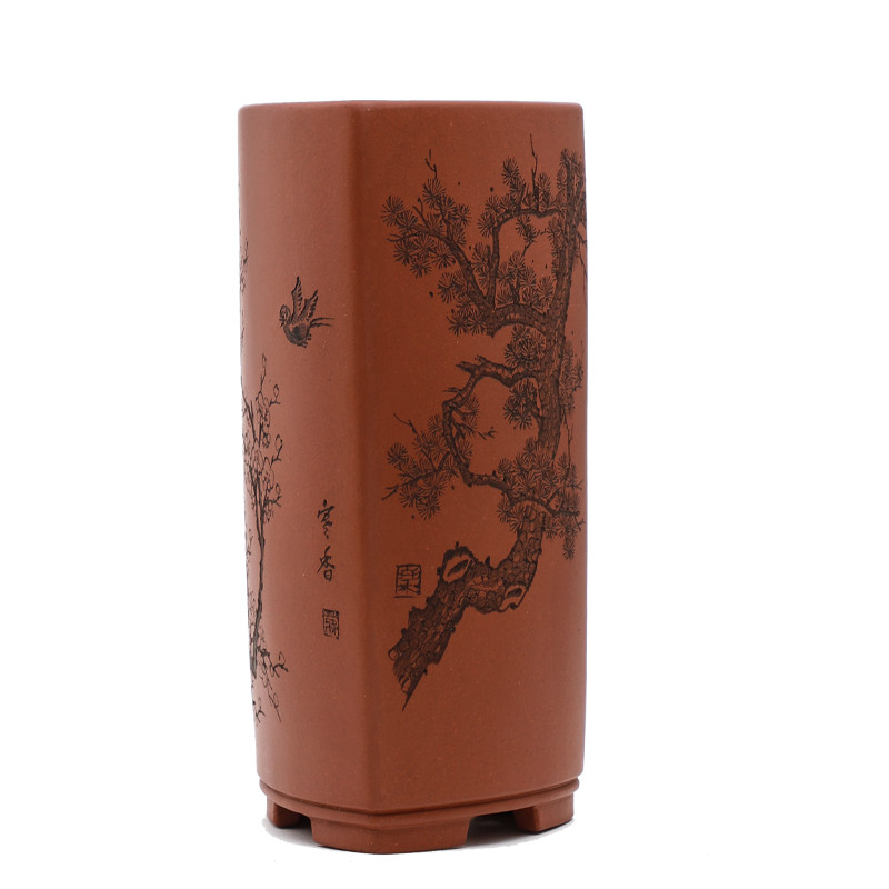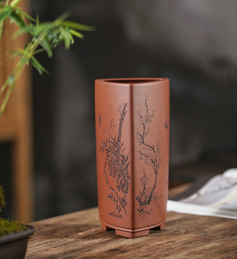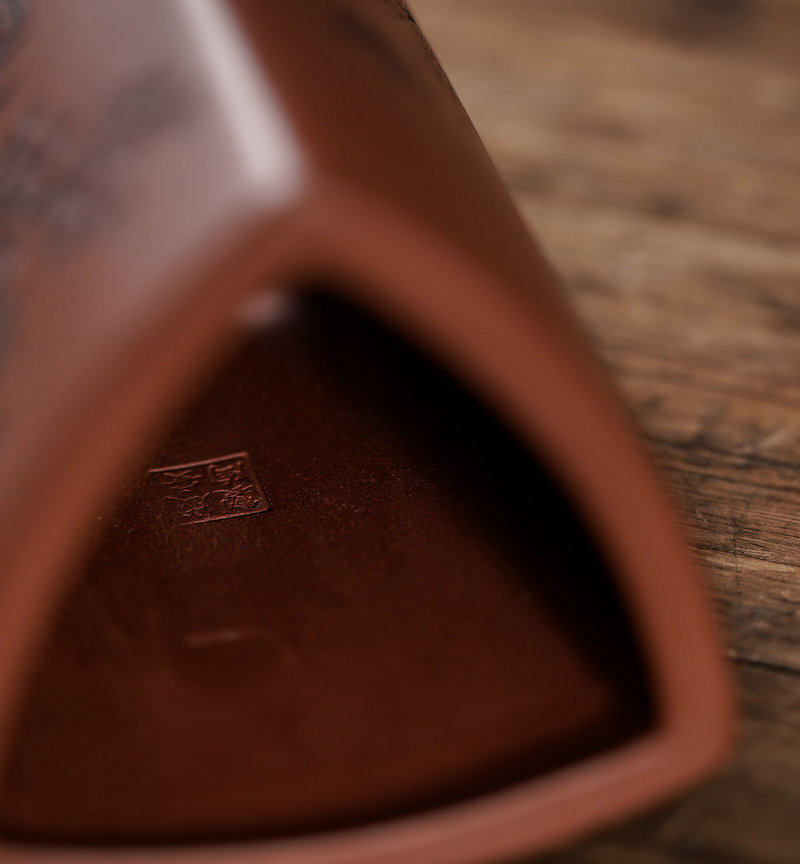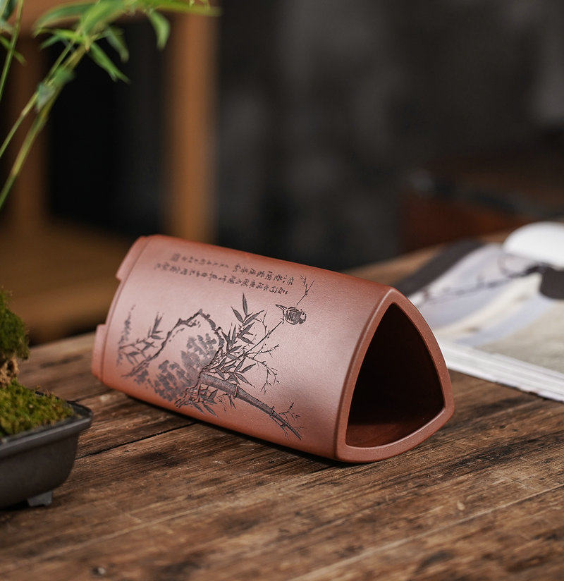 📚 尚扣雅奢紫砂 许成安全手工三角签筒 悬崖小盆景赏玩桌面花器笔筒