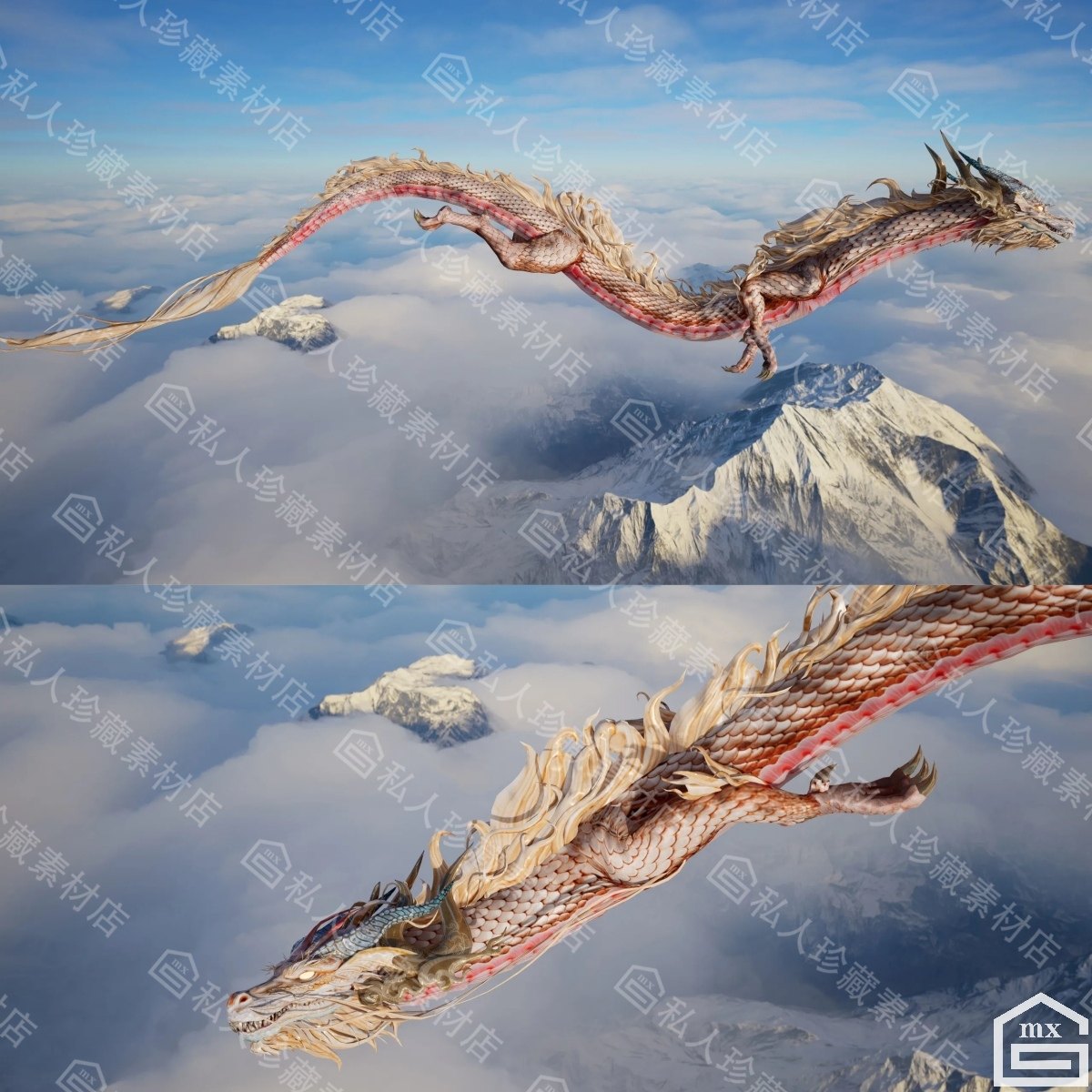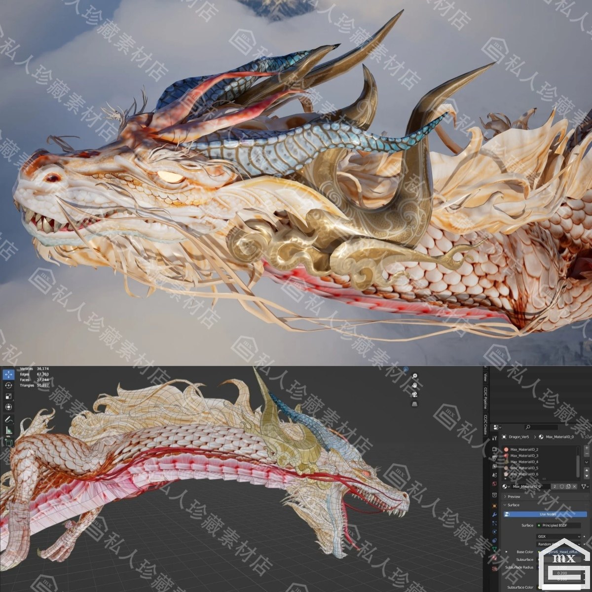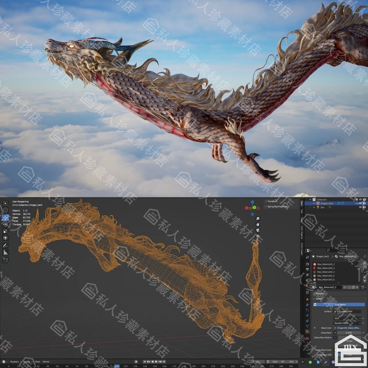 📚 C4D blender亚洲龙王3d模型带动画2k贴图png中国飞龙长龙模型PBR