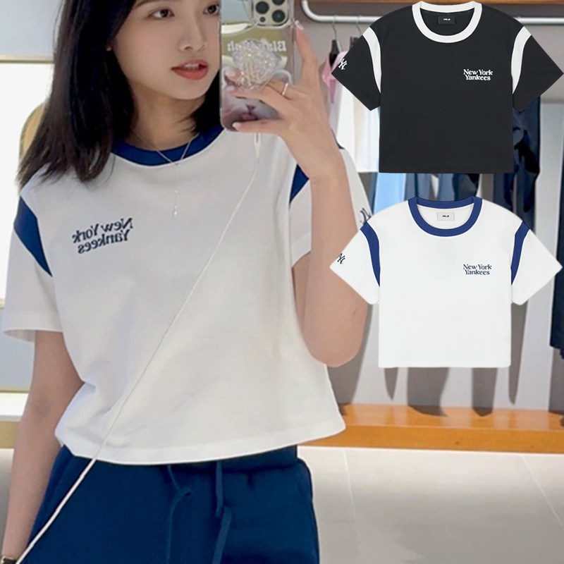 📚 24新款MLB短袖女NY学院风拼接撞色短款圆领休闲运动T恤3FTSV0343