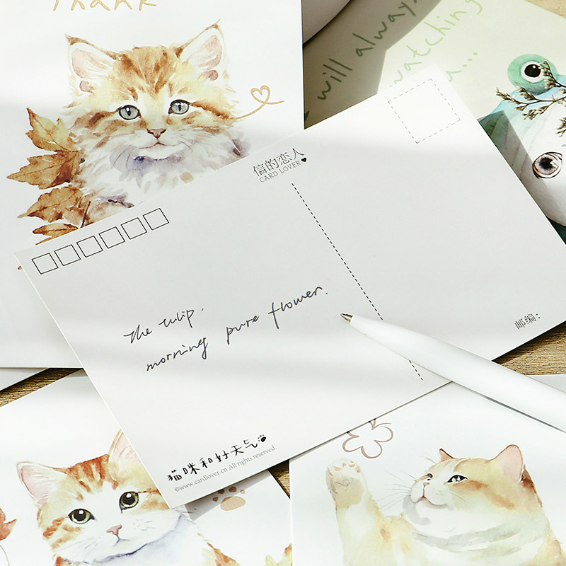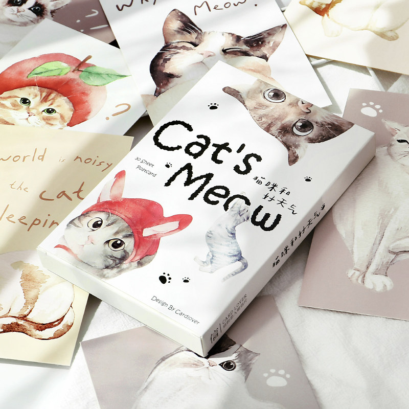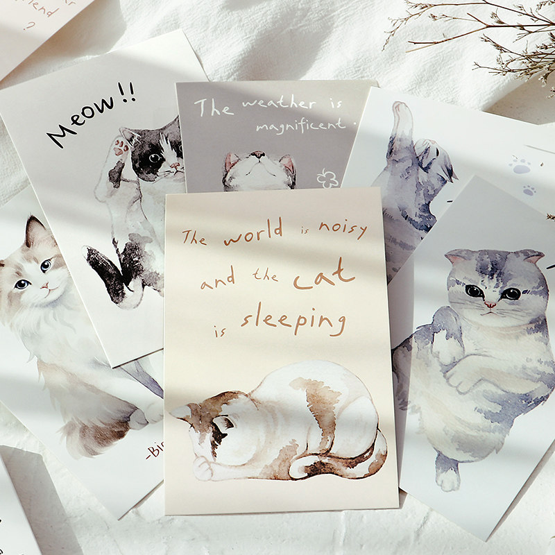 📚 ins风格手绘插画治愈系明信片30张猫咪和好天气系列墙贴装饰可爱小清新喵星人卡片萌宠动物节日祝福礼物贺卡