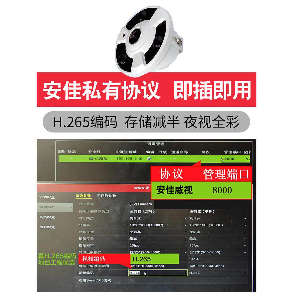 📚 海康协议全景鱼眼网络摄像机 音频高清POE广角监控摄像头360度