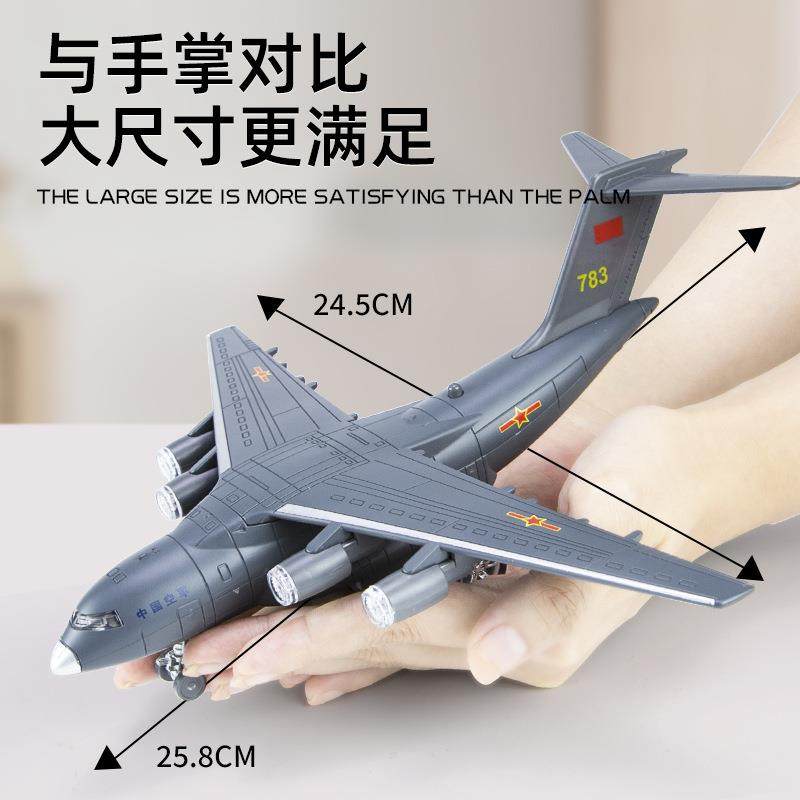 📚 大号合金飞机模型运20运输机C17战斗机儿童玩具回力声光盒装支架