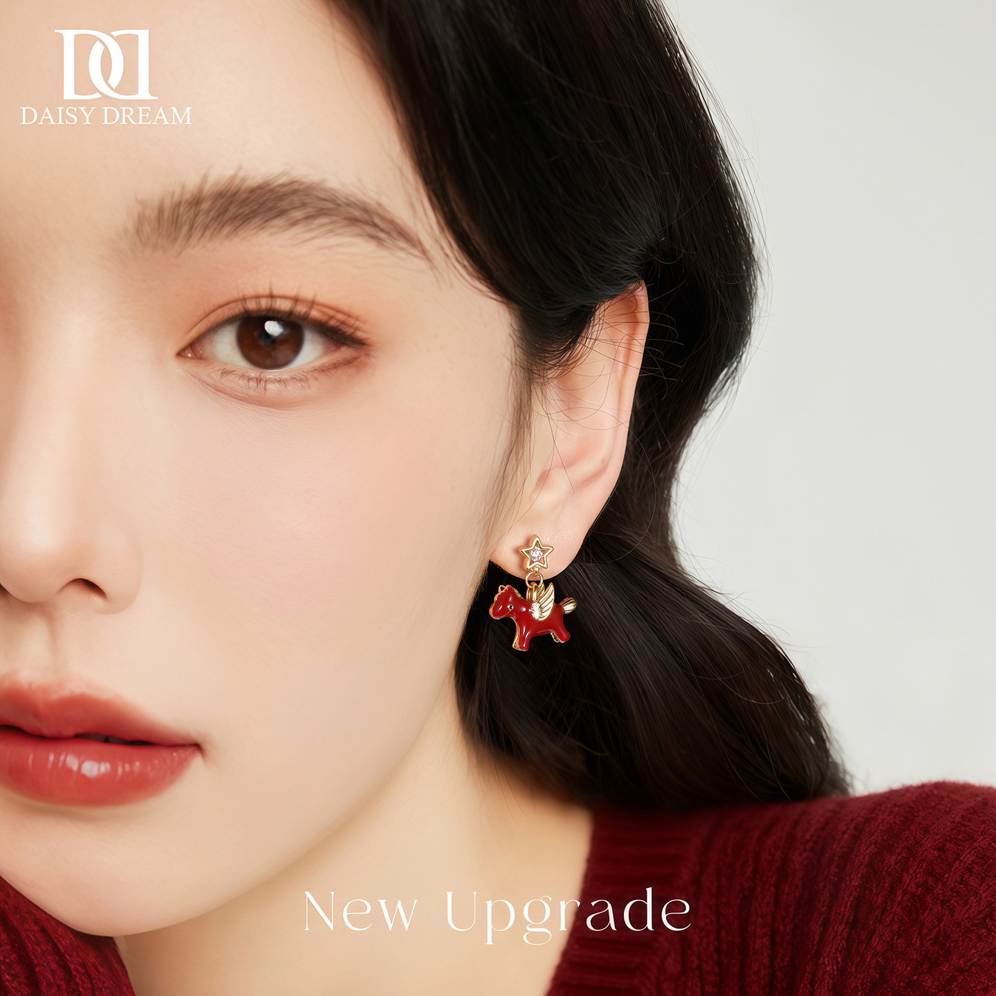 📚 999纯银针马上有钱耳钉女高级感本命年红色耳环2026马年新年耳饰