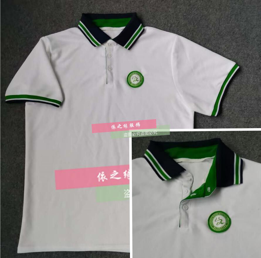 📚 常州市平陵高级中学校服同款白色珠地棉短袖t恤POLO衫大码定做