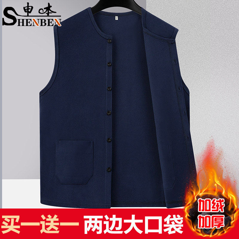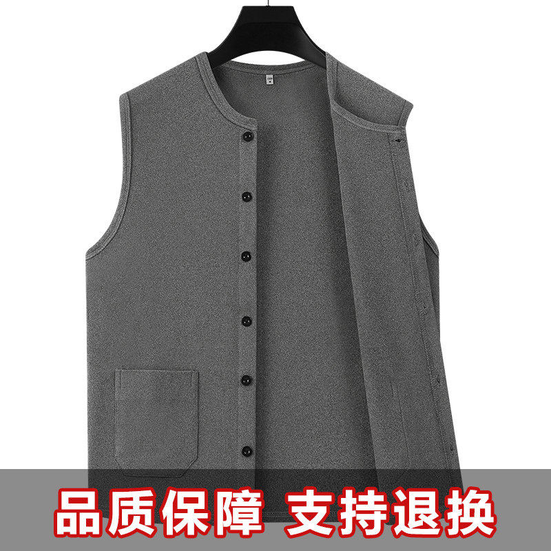 📚 申本德绒背心马甲中老年无袖加绒加厚老头保暖内搭爸爸开衫坎肩冬