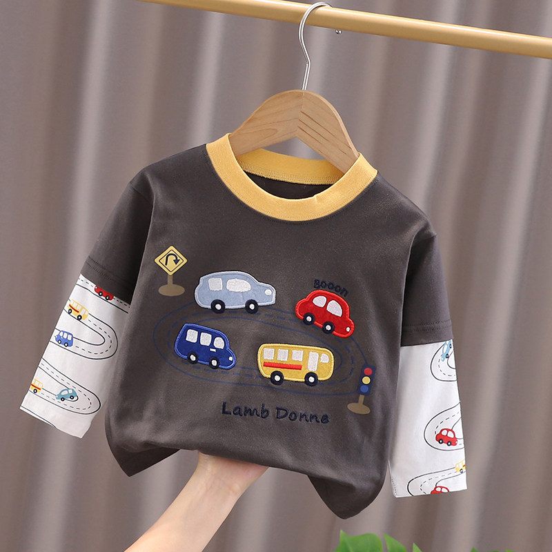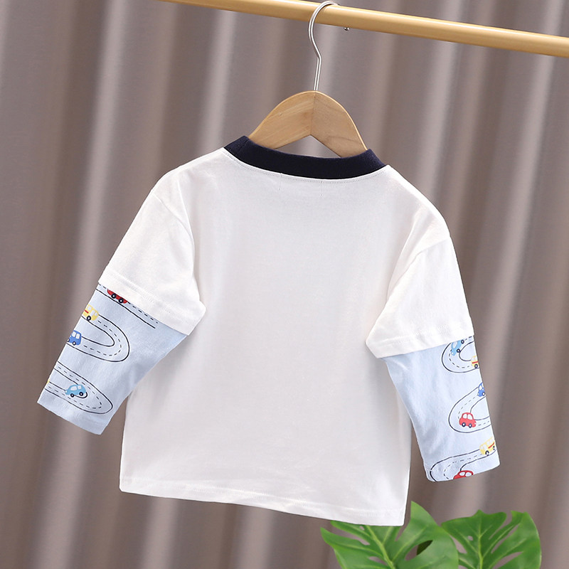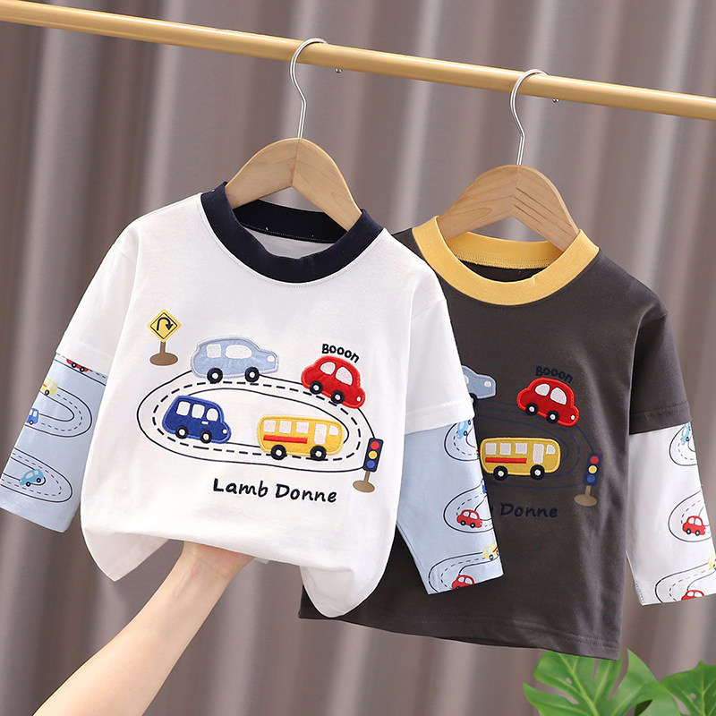 📚 男童长袖T恤2026秋装新款小童宝宝卡通圆领假两件儿童纯棉打底衫