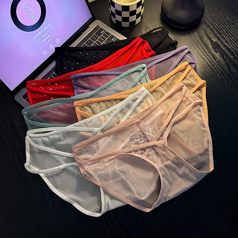 📚 新款女士性感网纱搭蕾丝内裤内裤细带交叉镂空高弹低腰内裤女1318