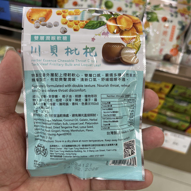 📚 香港代购位元堂双层润喉软糖15粒草本润喉糖罗汉果川贝枇杷八仙果