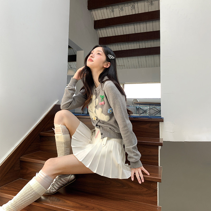 📚 FTT FlyTheTruth『灰野蜜语』 可爱兔子毛衣开衫外套秋灰色针织衫
