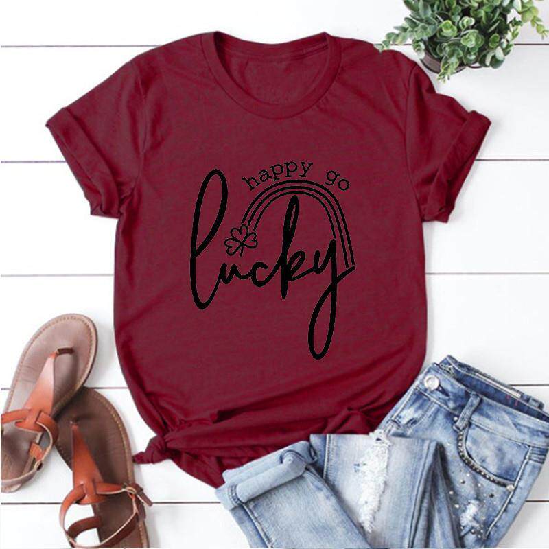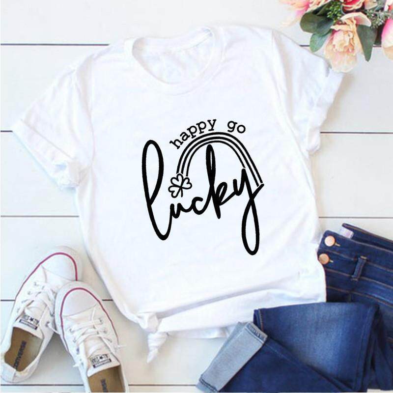 📚 St Patricks Day Woman Tshirts Happy Go Lucky Graphic Tees Me