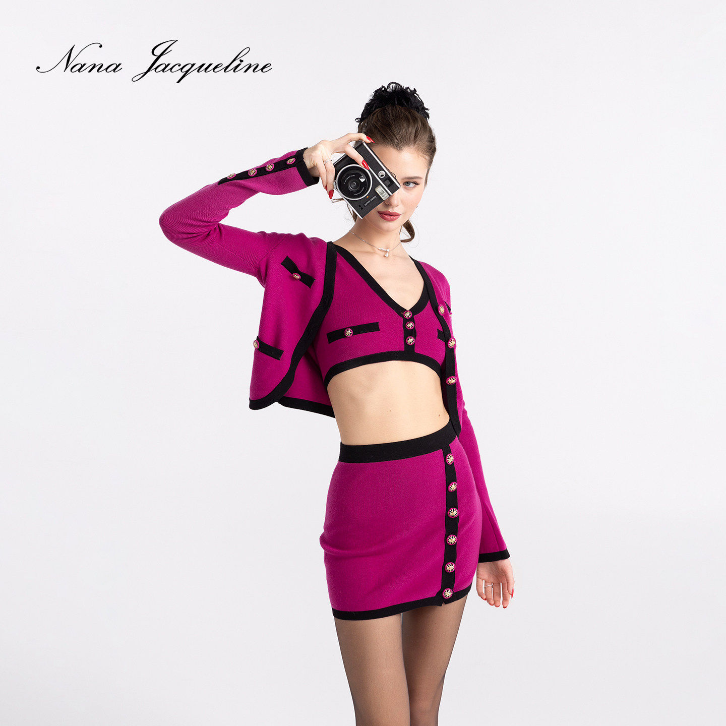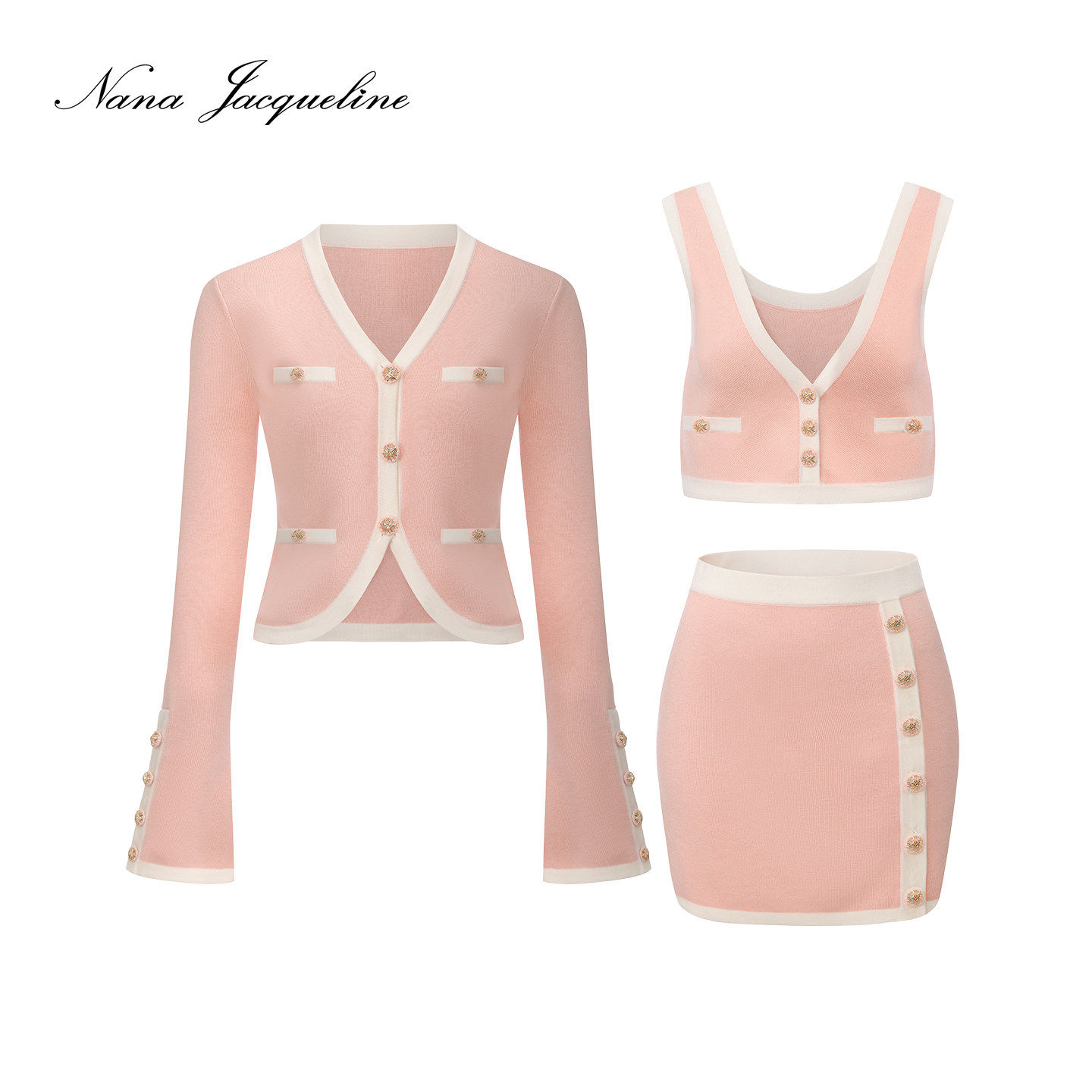 📚 NanaJacqueline经典款复古撞色三件套女春新款千金针织衫背心短裙