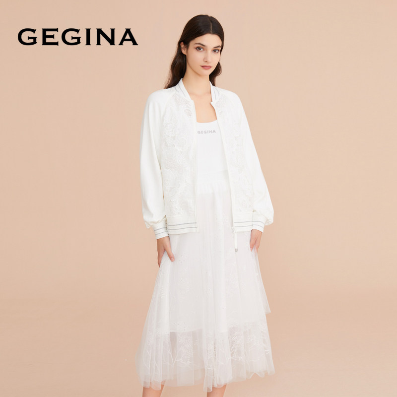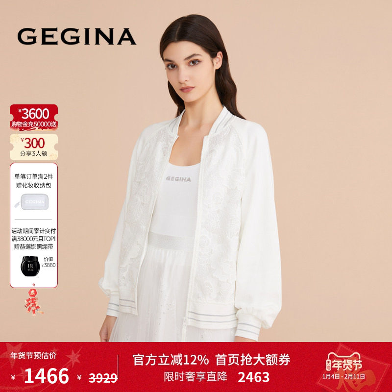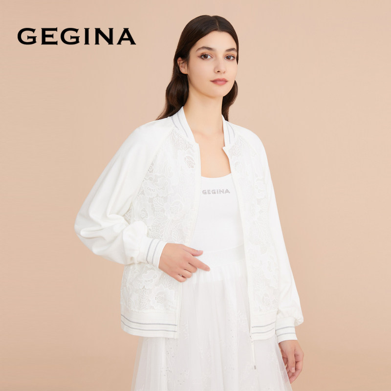 📚 GEGINA吉吉娜女装蕾丝贴花白色短外套简洁百搭气质外套女商场同款