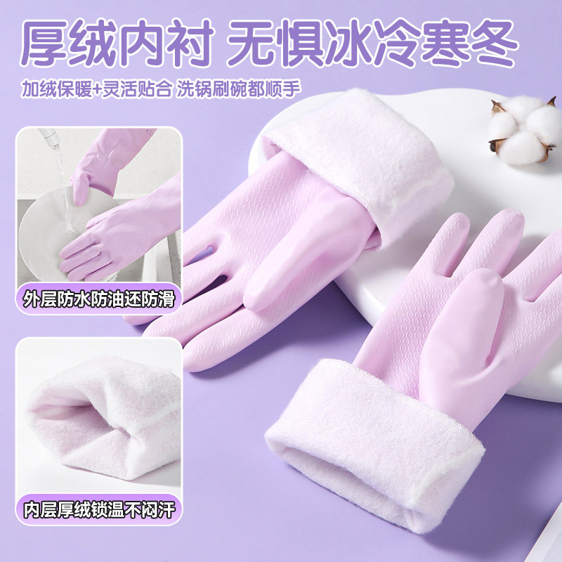 📚 美丽雅加绒手套洗碗家务手套防水PVC耐用保暖加长护手手套