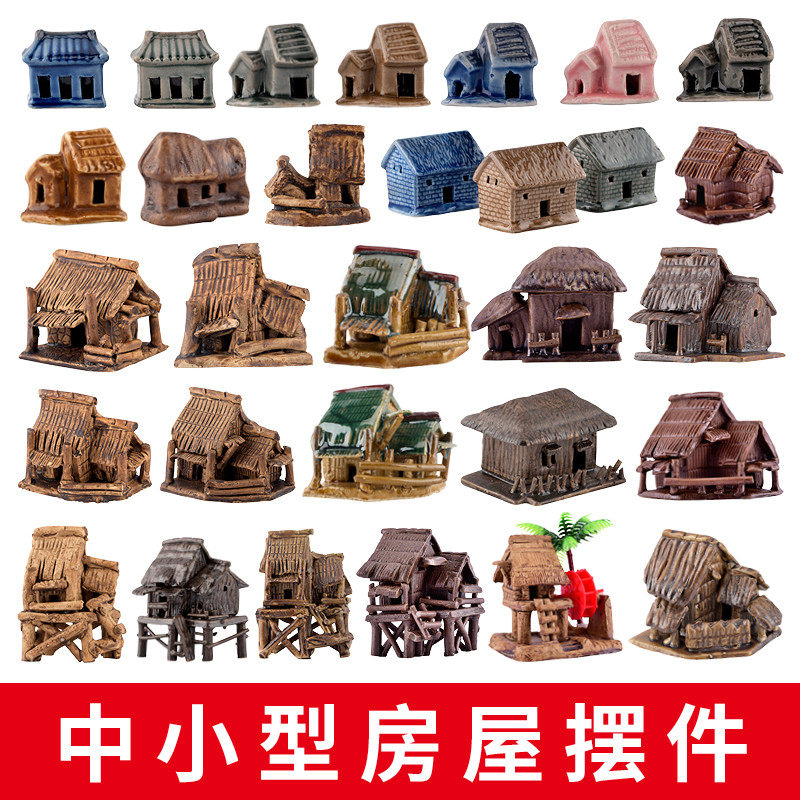 📚 假山盆景小房子房屋摆件配件装饰工艺品茅屋水屋草屋吸水石微景观
