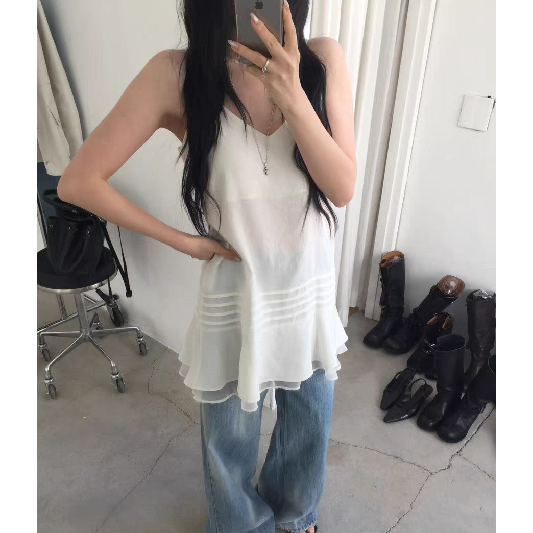 📚 现货!V领吊带裙26春季新款韩国东大门气质纯色双层下摆连衣裙女