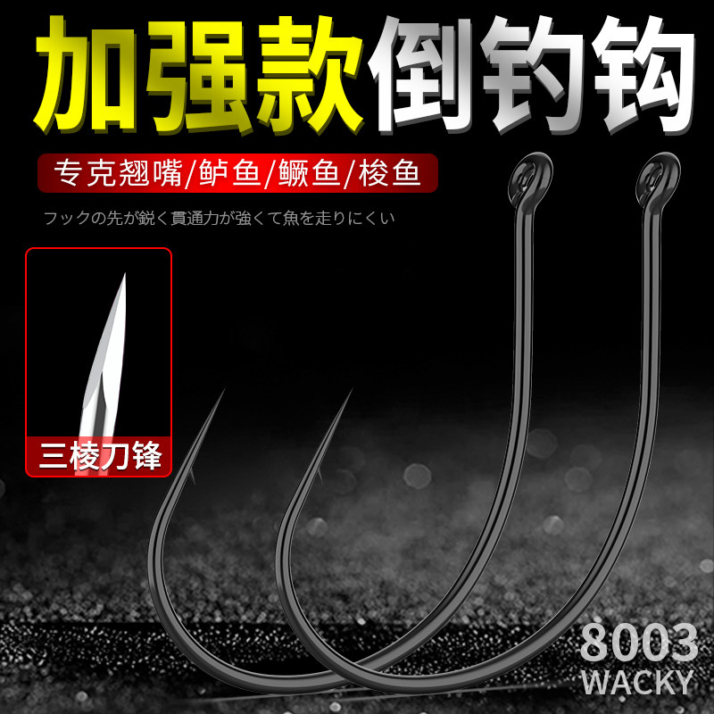 📚 8003加强倒钓钩路亚筏钓挂泥鳅翘嘴钩细条活饵软虫进口wacky钩