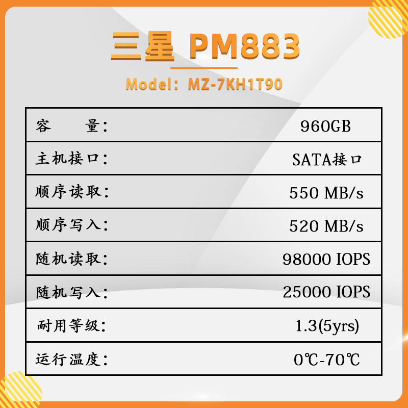 📚 Samsung/三星 PM883 960G 企业级固态硬盘 SSD SATA 服务器 网吧