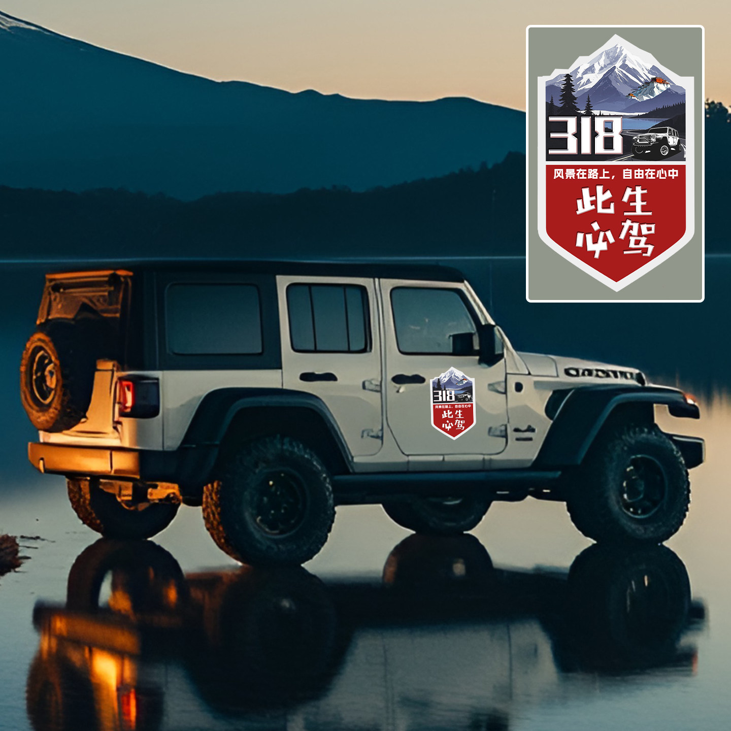 📚 此生必驾318黑胶车贴新疆西藏拉萨独库自驾游国道219摩托汽车贴纸