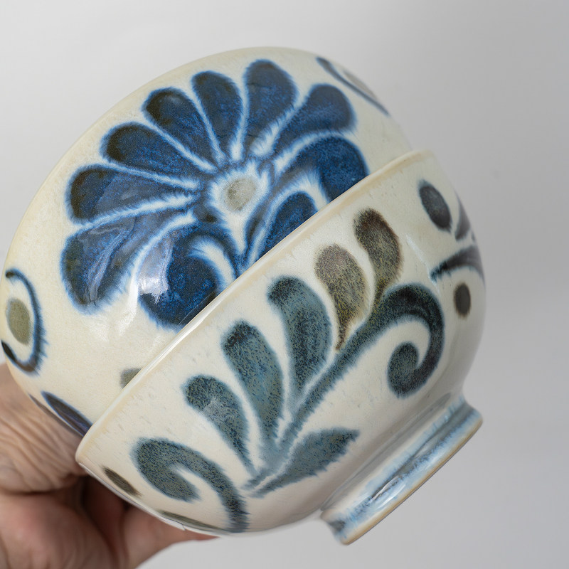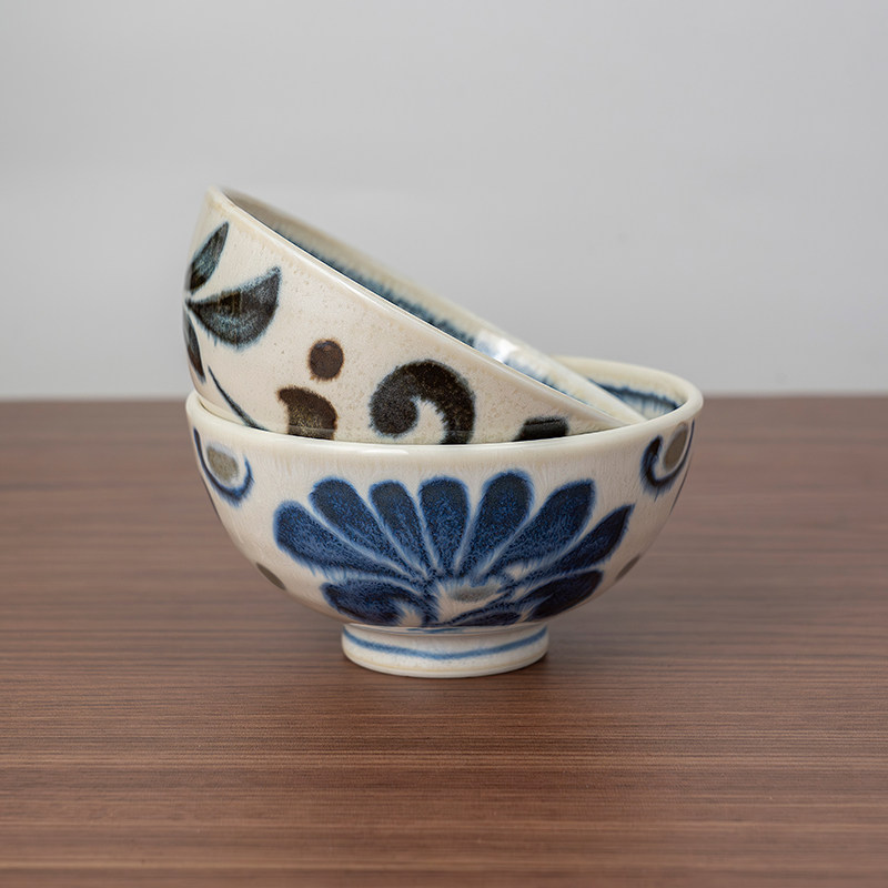 📚 美浓烧进口琉球花4.8英寸米饭碗日式家用吃饭喝汤大容量餐具