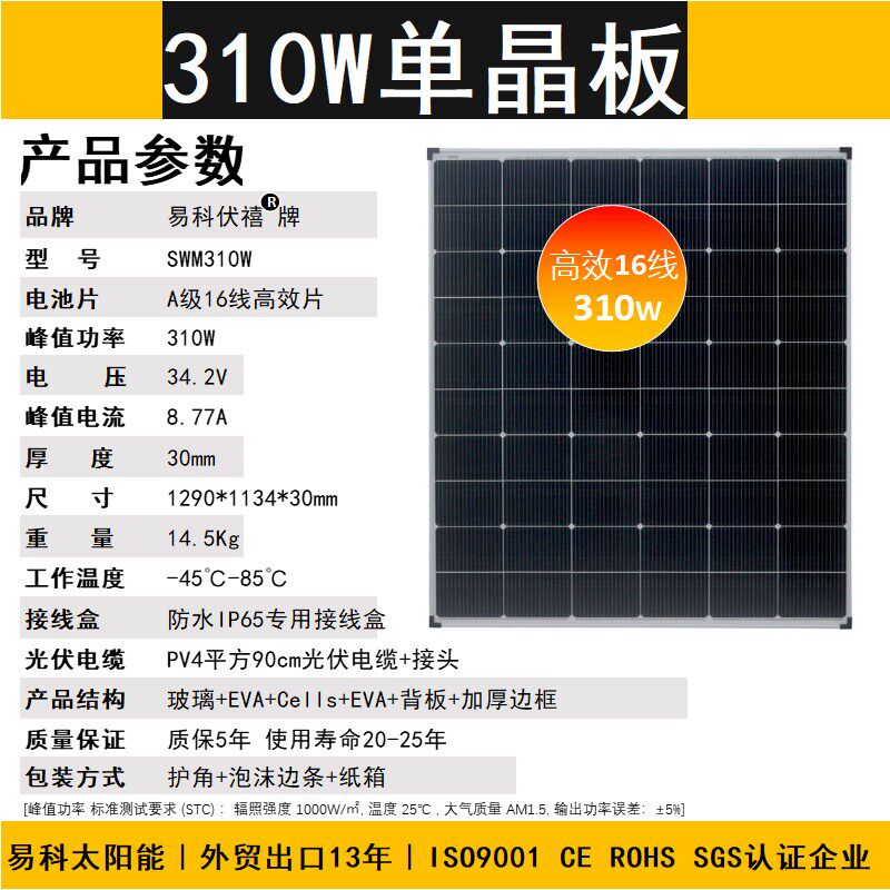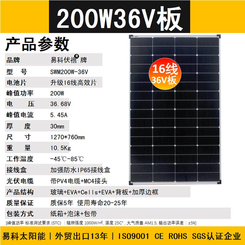 📚 易科16线200w太阳能板单晶12V光伏发电板家用系统充电板房车家用