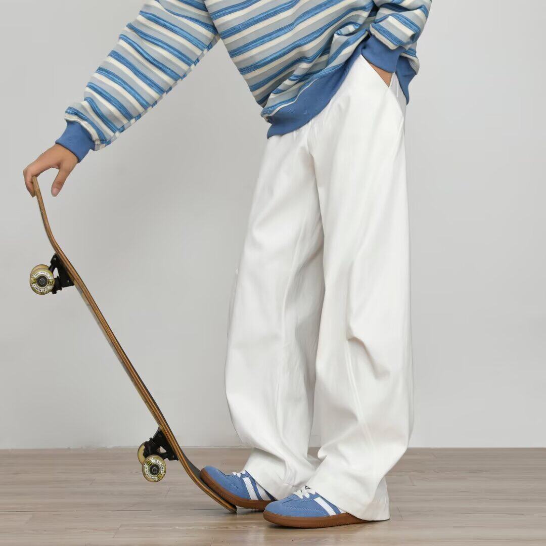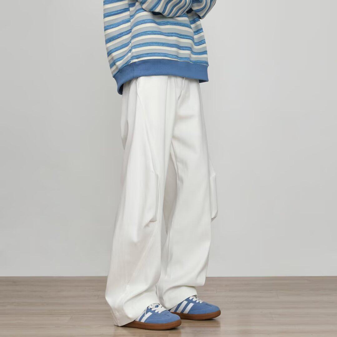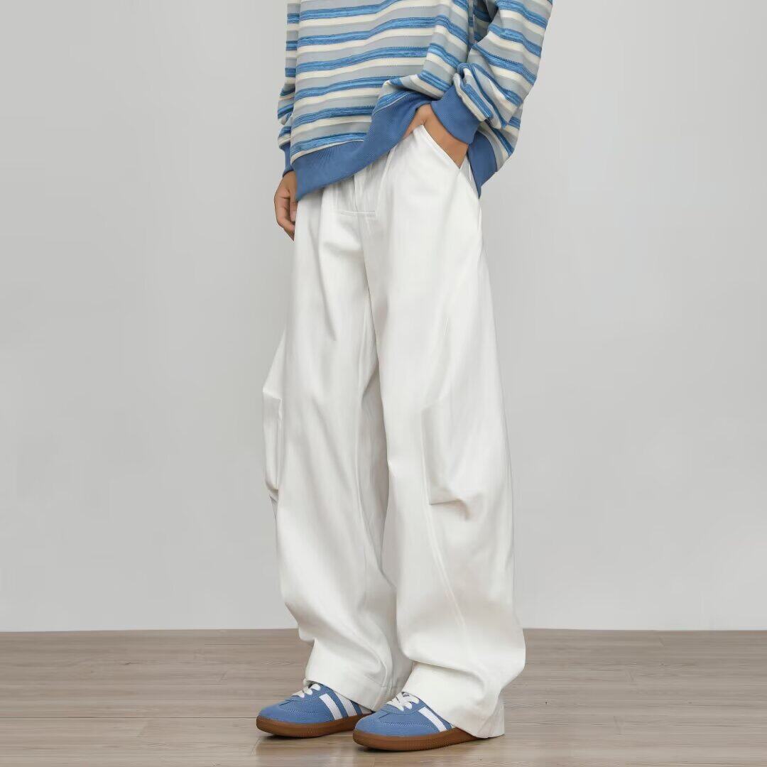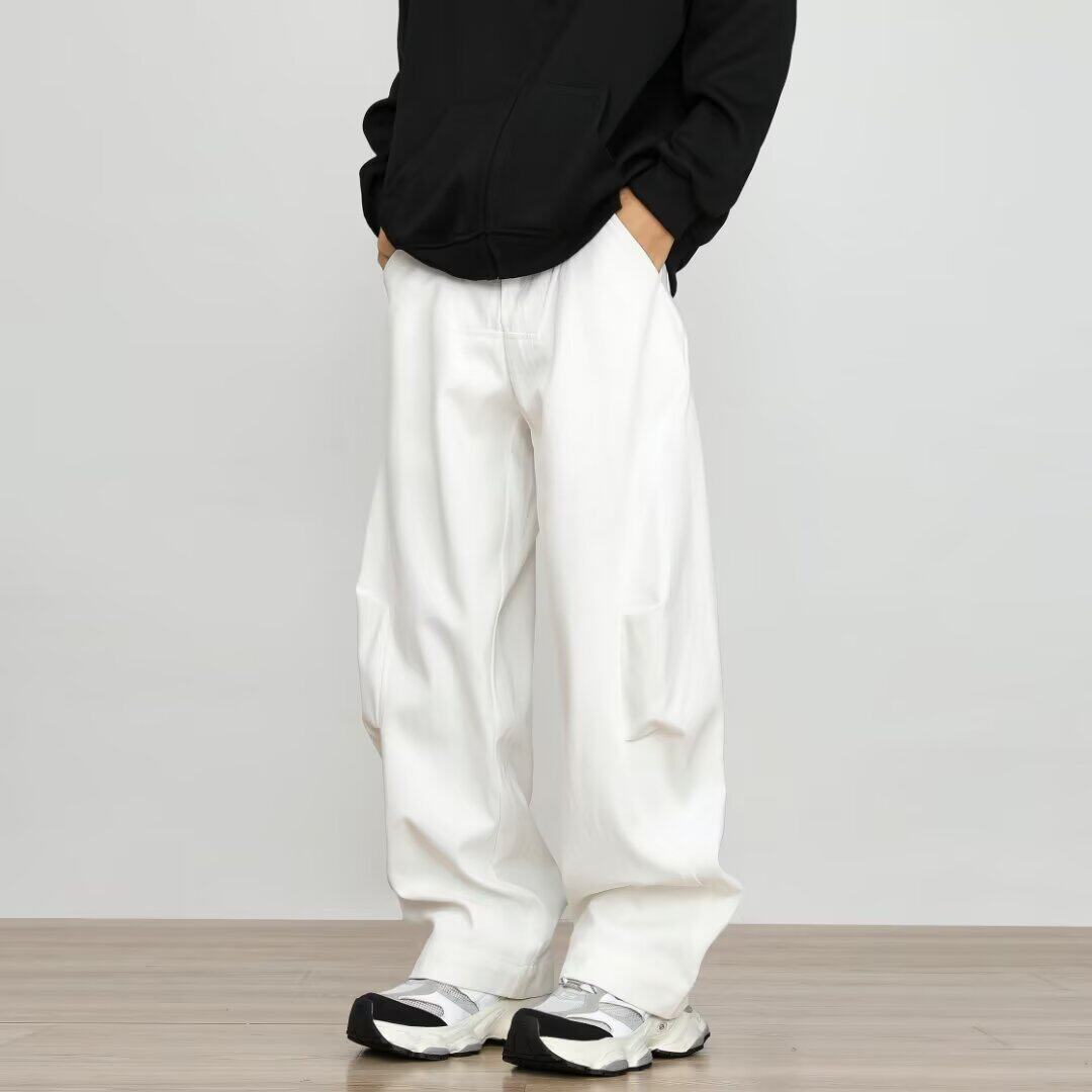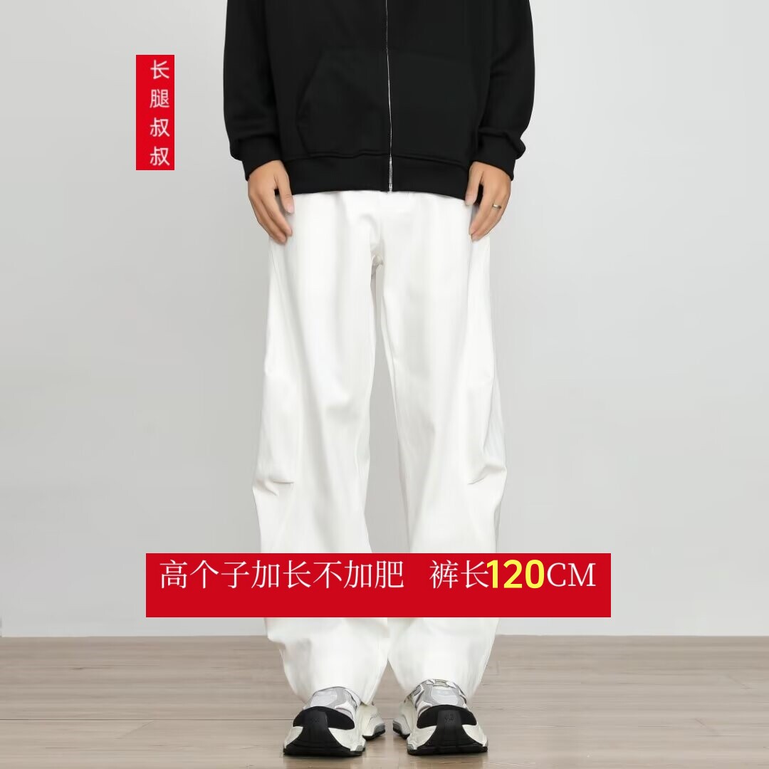 📚 195高个子加长裤子120CM白色镰刀裤褶皱弧形阔腿裤弯刀长裤休闲裤