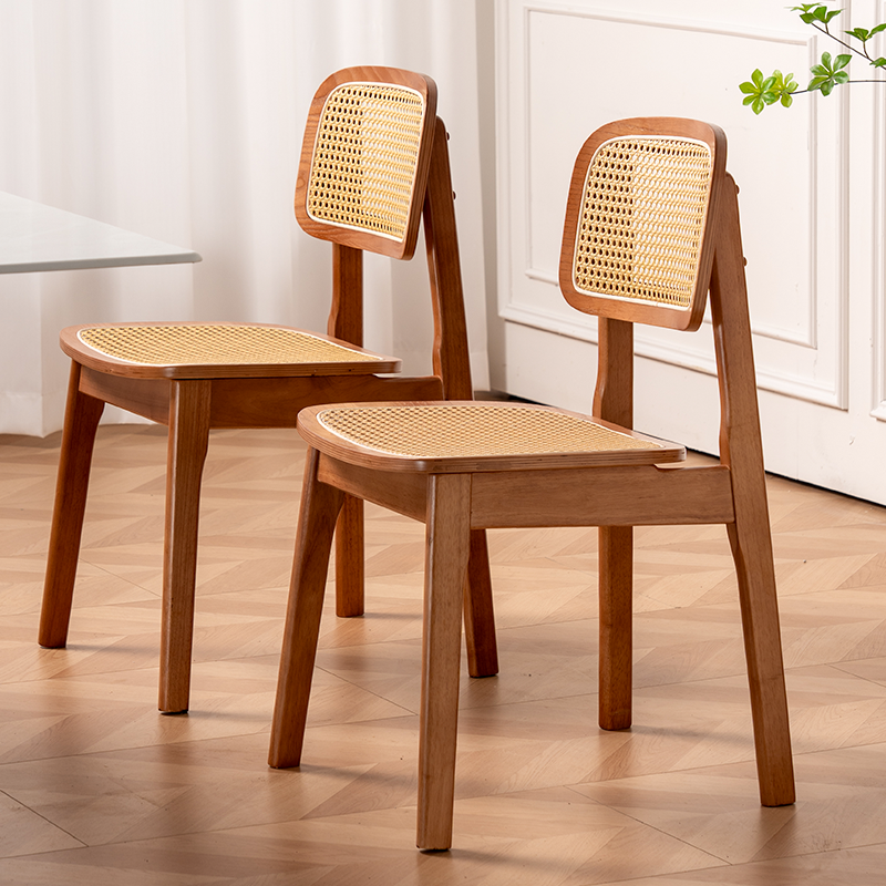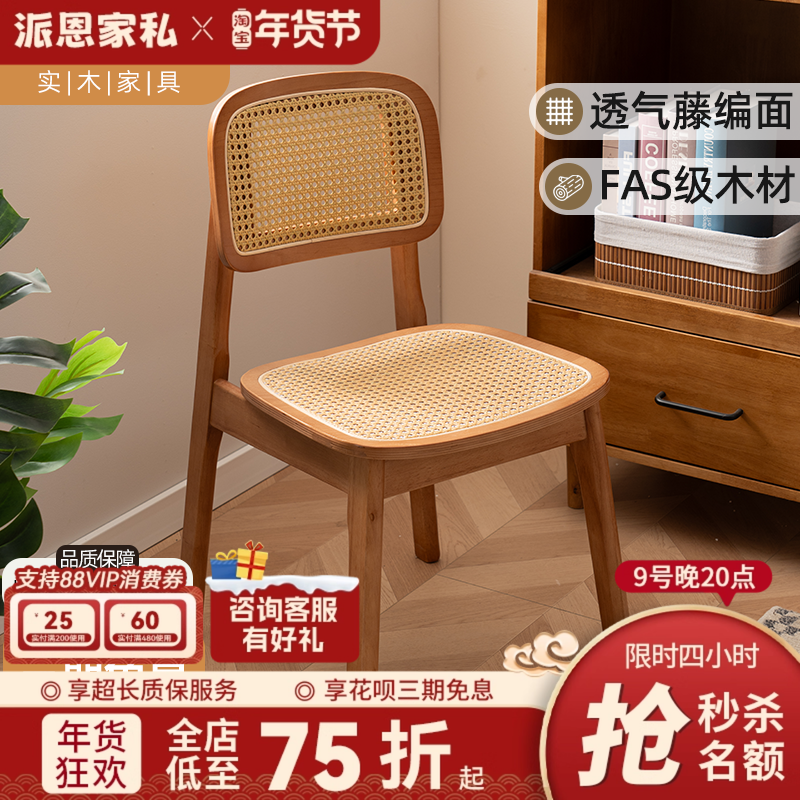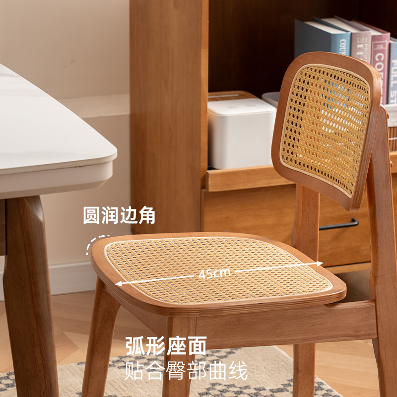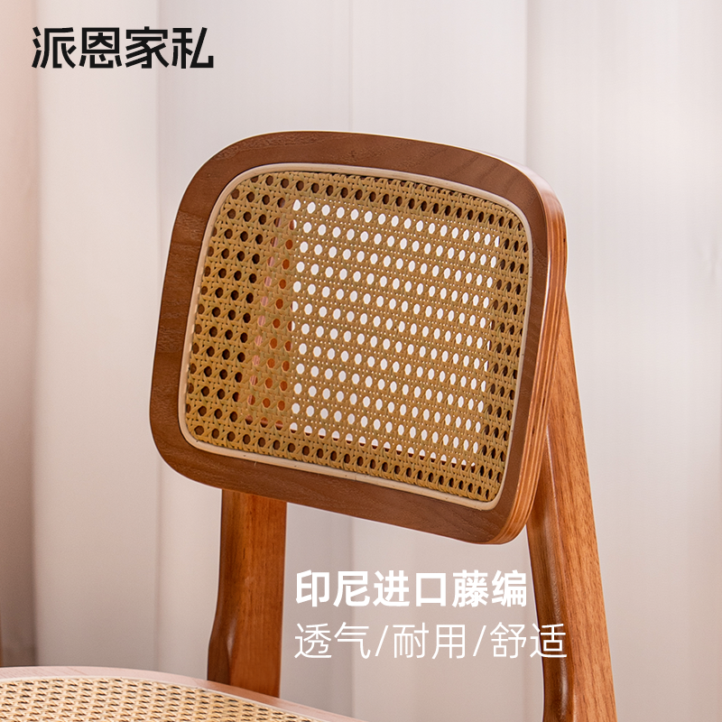 📚 北欧藤编实木餐椅卡曼椅轻奢靠背椅子藤编饭桌椅子咖啡厅同款餐椅
