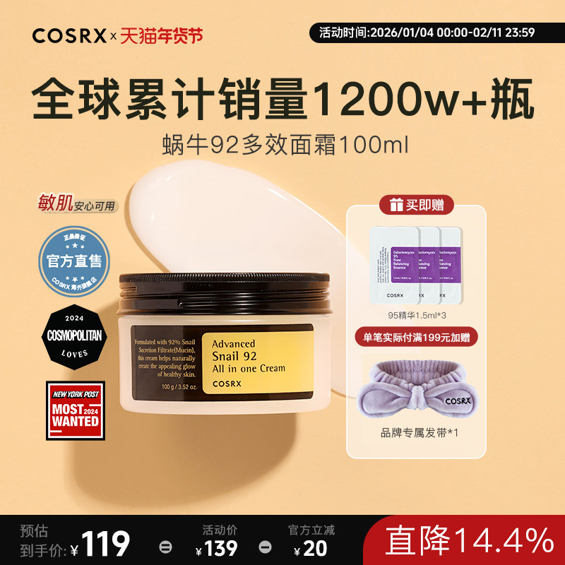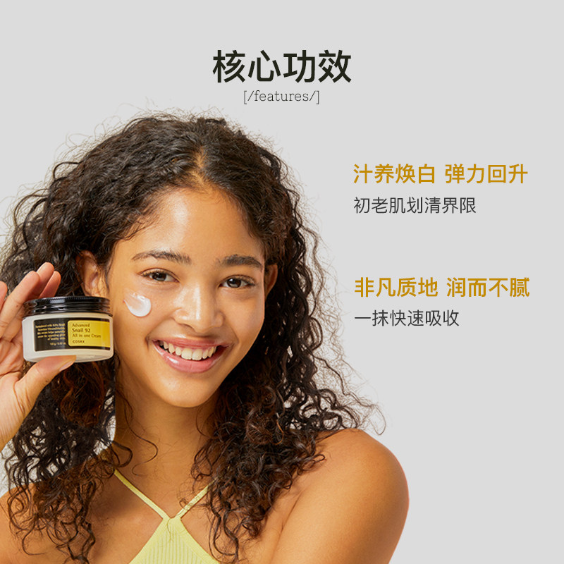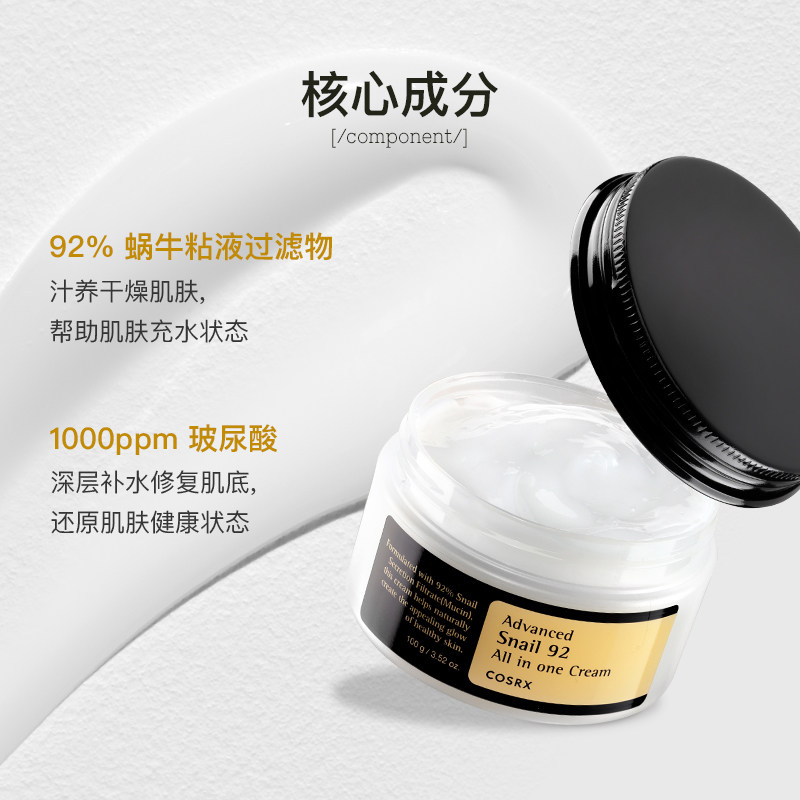 📚 COSRX蜗牛面霜多效紧致面霜玻尿酸补水保湿痘肌口碑100ml