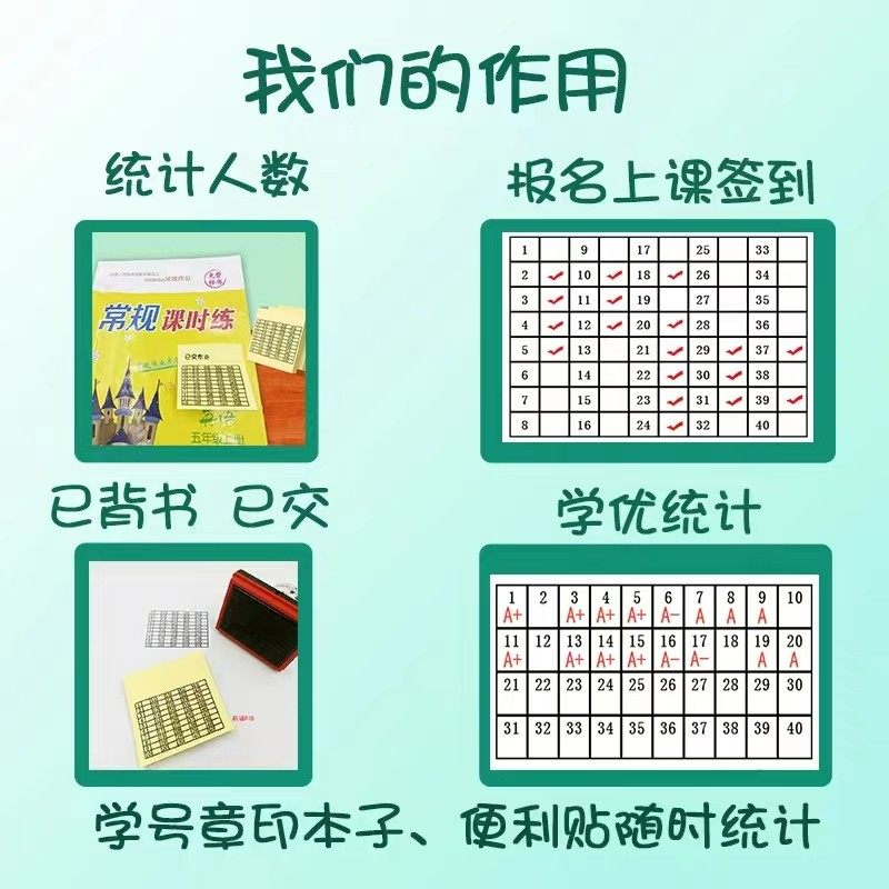 📚 学号印章学生缺交名单统计人数字教师查作业背诵默写班级学号盖章