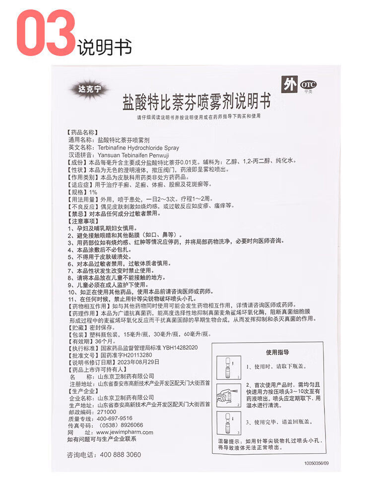 📚 达克宁盐酸特比萘芬喷雾剂正品官方旗舰店60ml抗真菌杀菌脚气喷雾