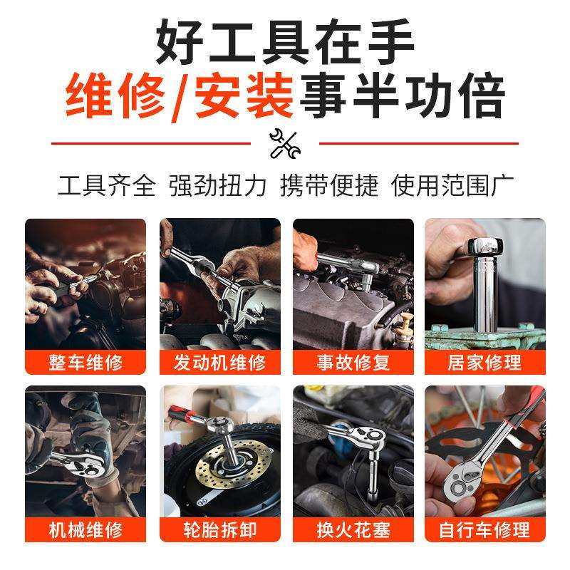 📚 套筒套装组合汽车维修工具小飞46件棘轮中飞随车工具箱全套扳手盒