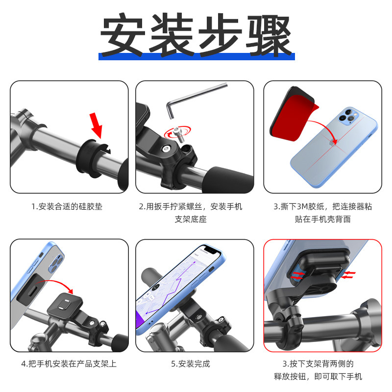 📚 摩托车卡扣手机支架自行车磁吸自动对位机车电动车快速取放快拆架