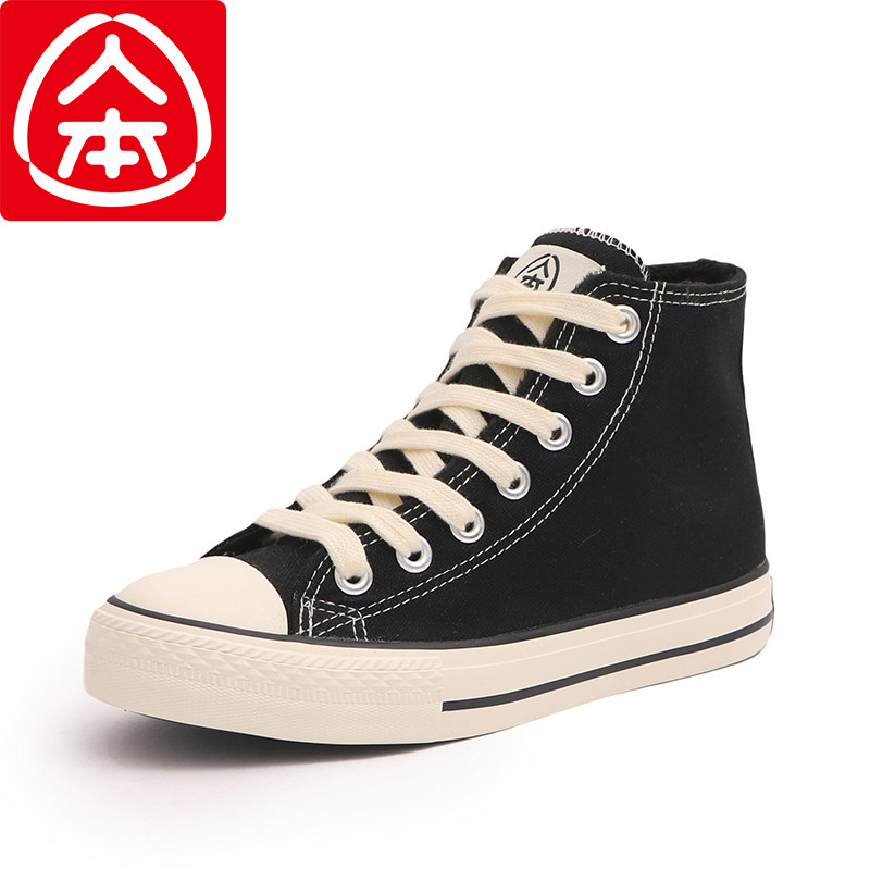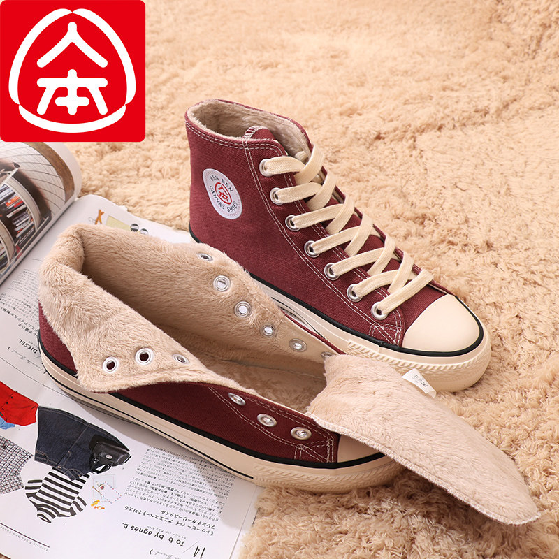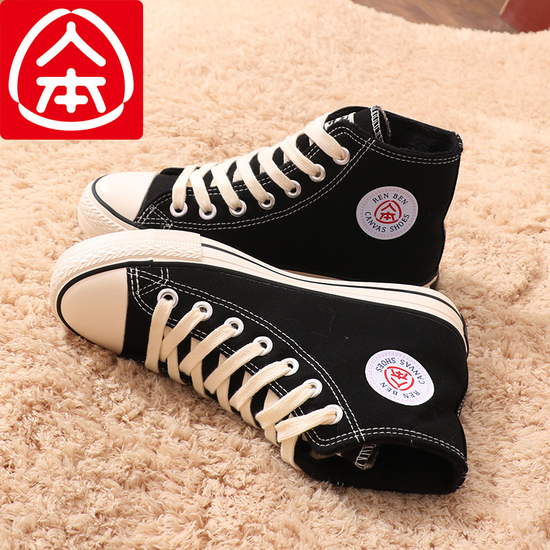 📚 人本高帮加绒帆布鞋女学生保暖棉鞋冬季2020新款百搭休闲平底板鞋