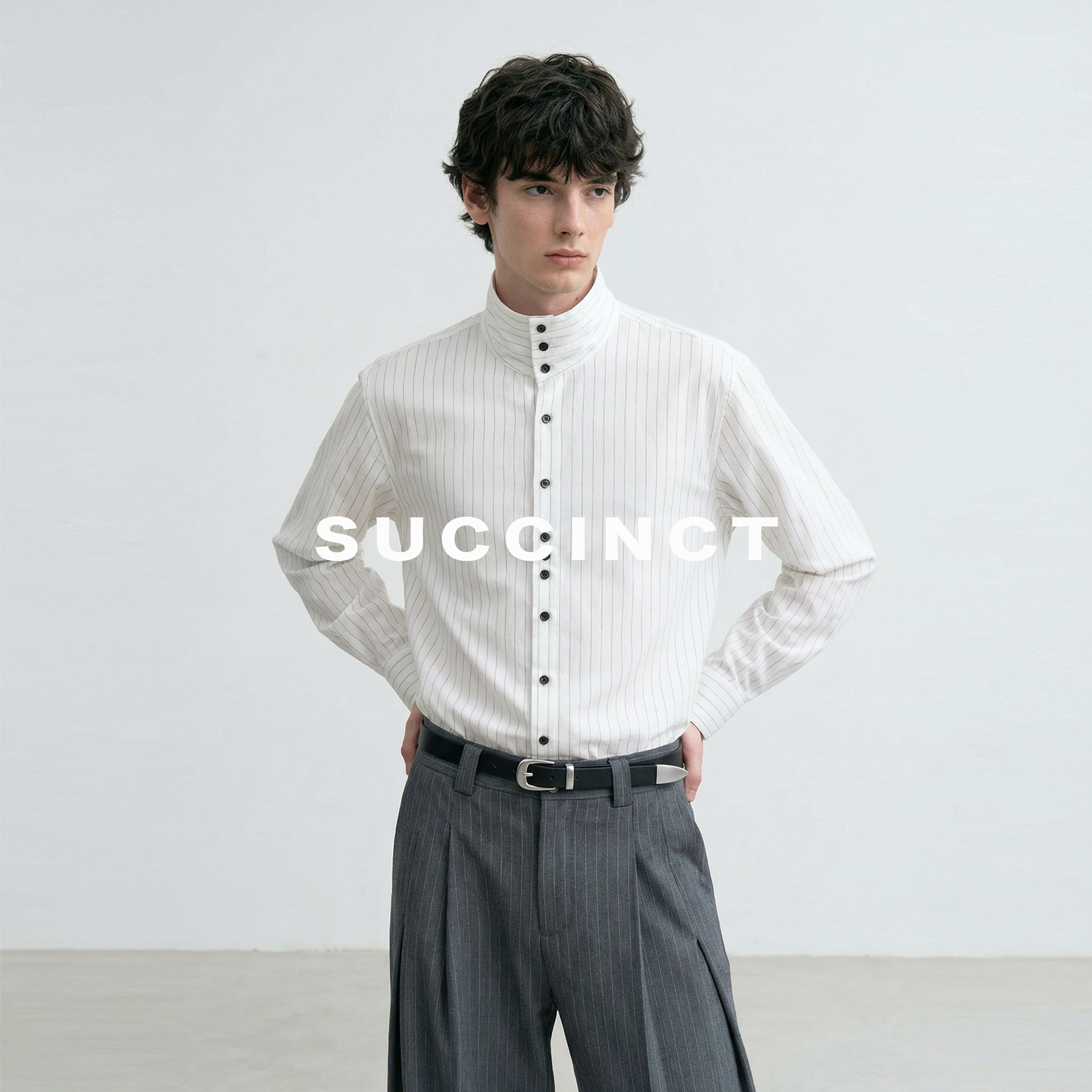 📚 Succinct“孚” 老钱优雅条纹色织混纺垂坠短廓多领型调节衬衫
