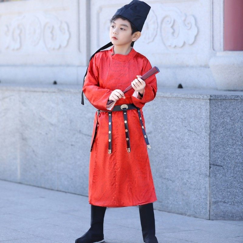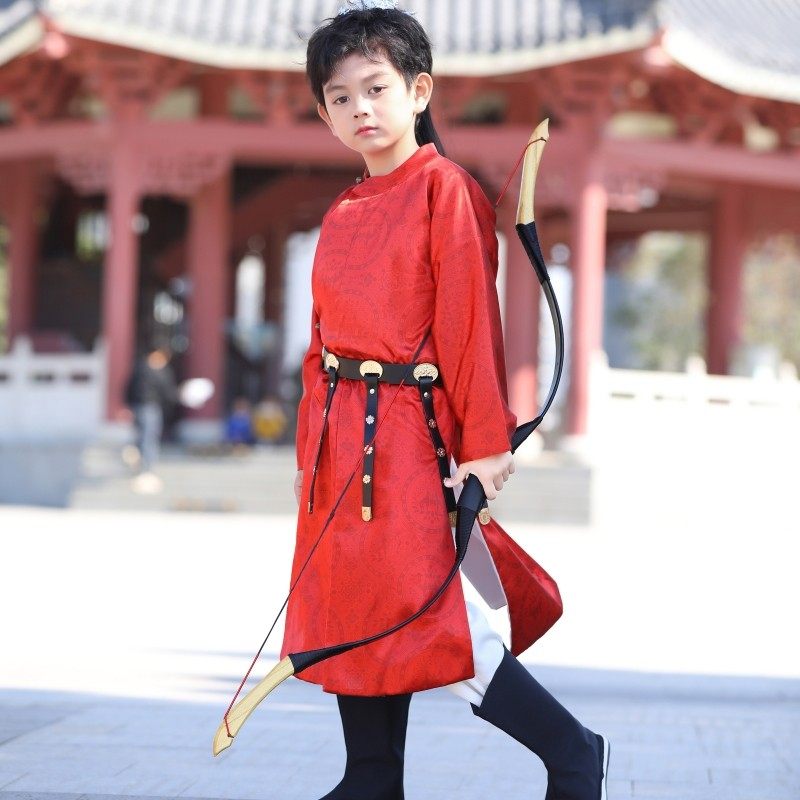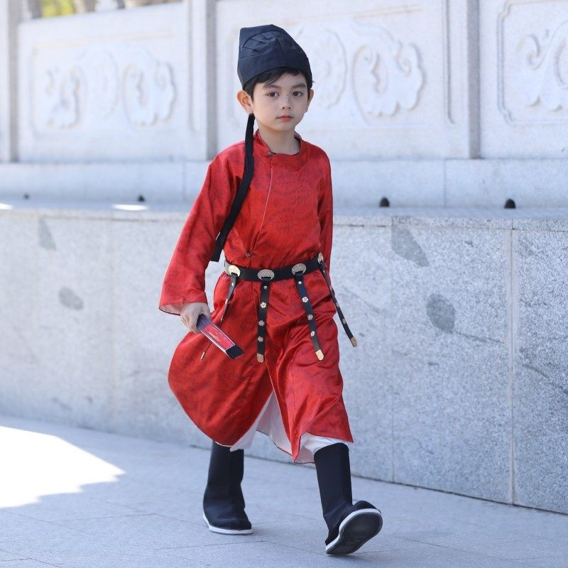 📚 男童圆领袍儿童红色国风过年服宝宝周岁唐朝李白服饰