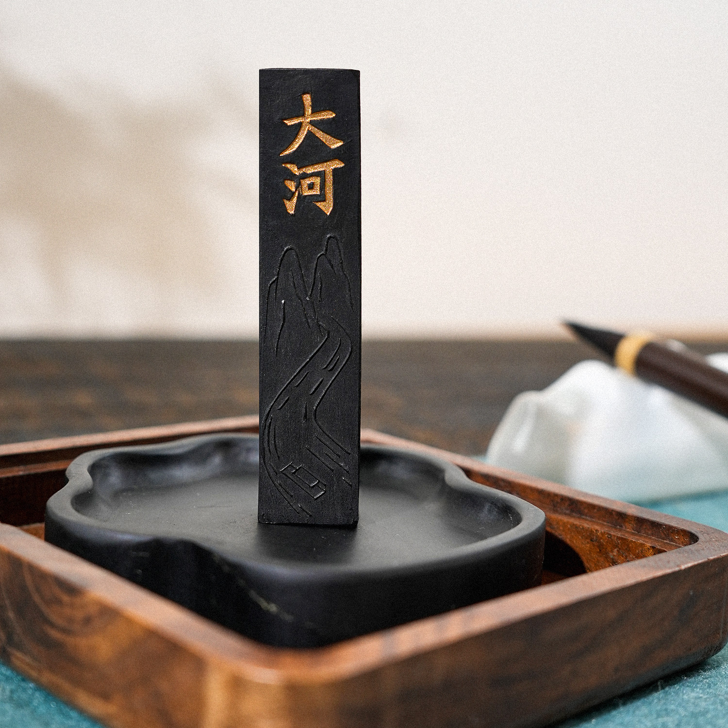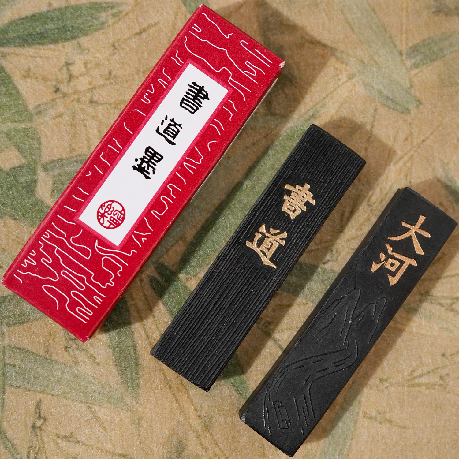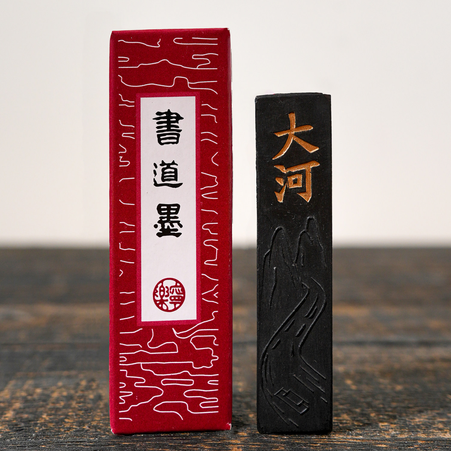 📚 大山皮纸书道大河墨条徽墨老胡开文墨锭墨块松烟墨文房四宝初学者毛笔书法研墨专用砚台固体墨研磨国画墨砚台