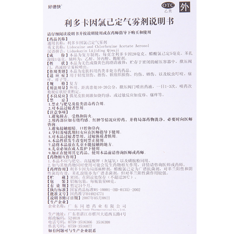 📚 好德快 利多卡因氯己定气雾剂 60g 用于轻度割伤 擦伤 软组织损伤