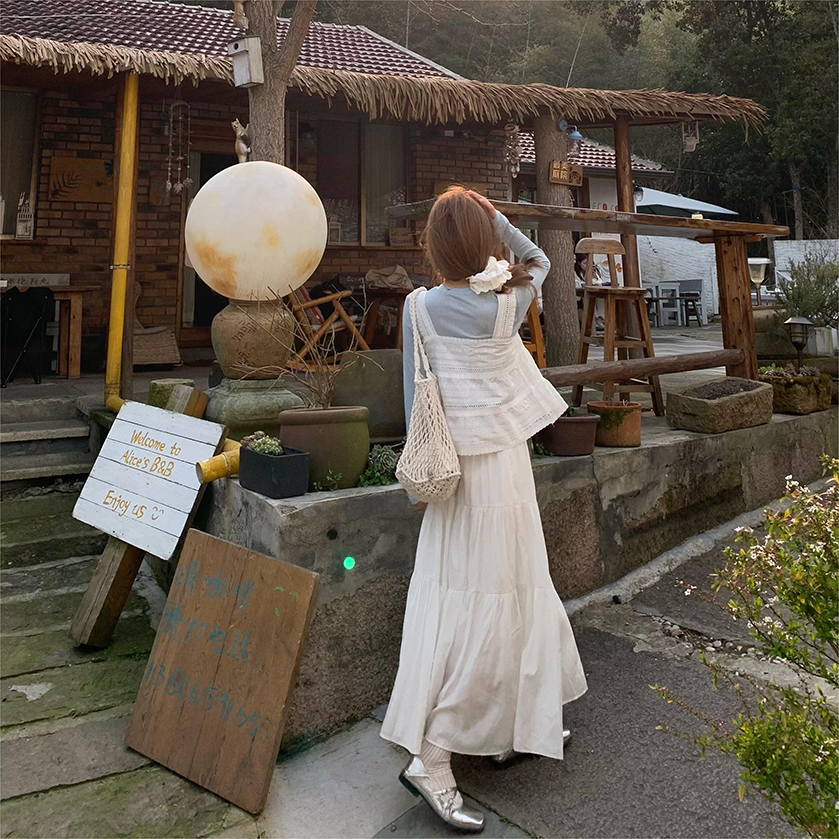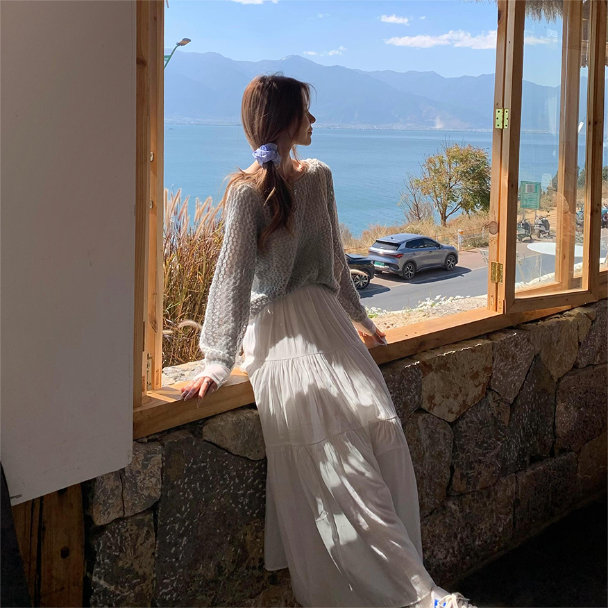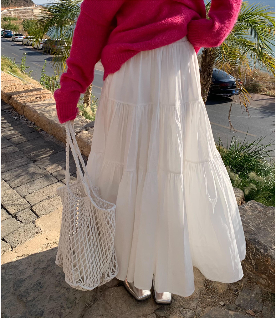📚 Yilann白色蛋糕群半身裙女2025新款春秋气质法系显瘦高腰a字长裙
