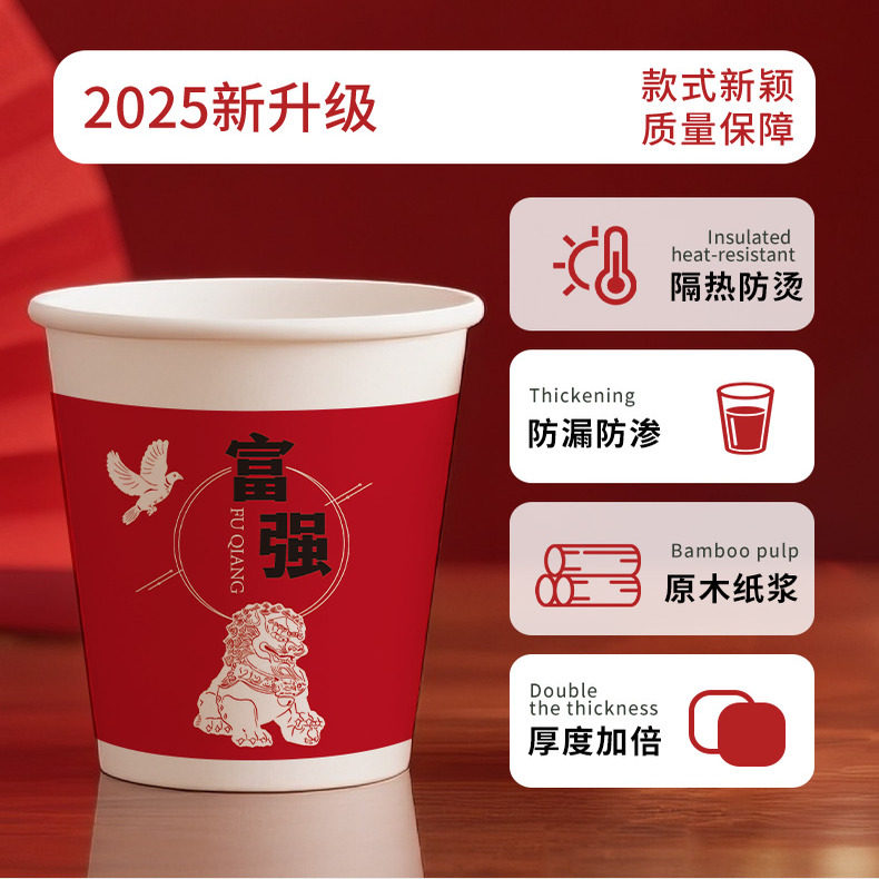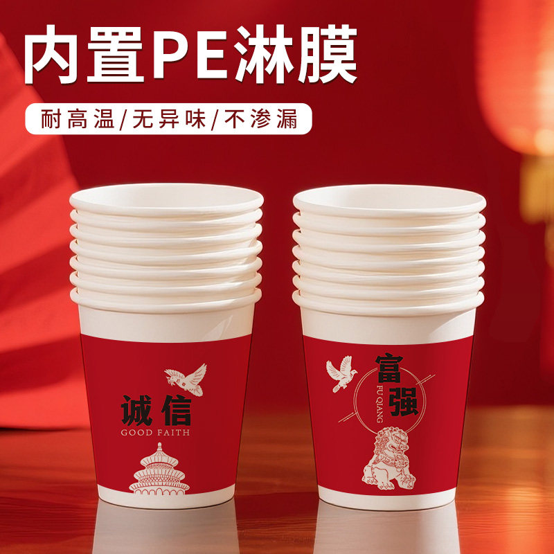 📚 2025国庆纸杯整箱批发加厚红色喜庆款家用聚会招待商务接待专用杯