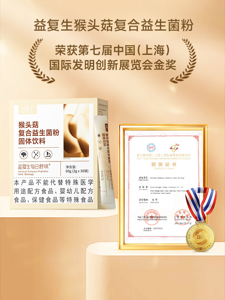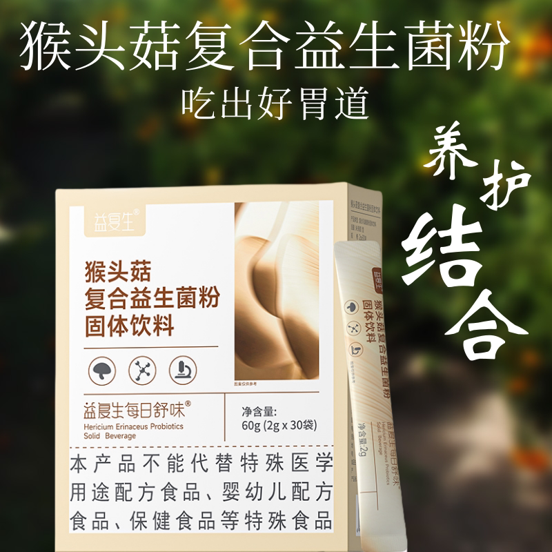 📚 益复生每日舒味猴头菇便携装复合益生菌粉固体饮料一盒30条