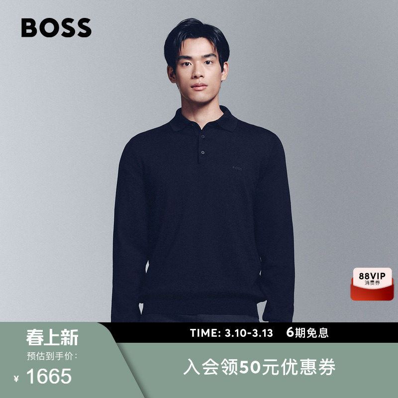 📚 【100%羊毛】BOSS博斯 男刺绣装饰长袖休闲Polo领针织衫