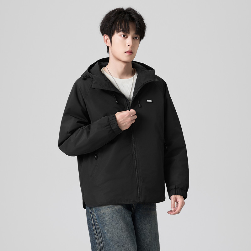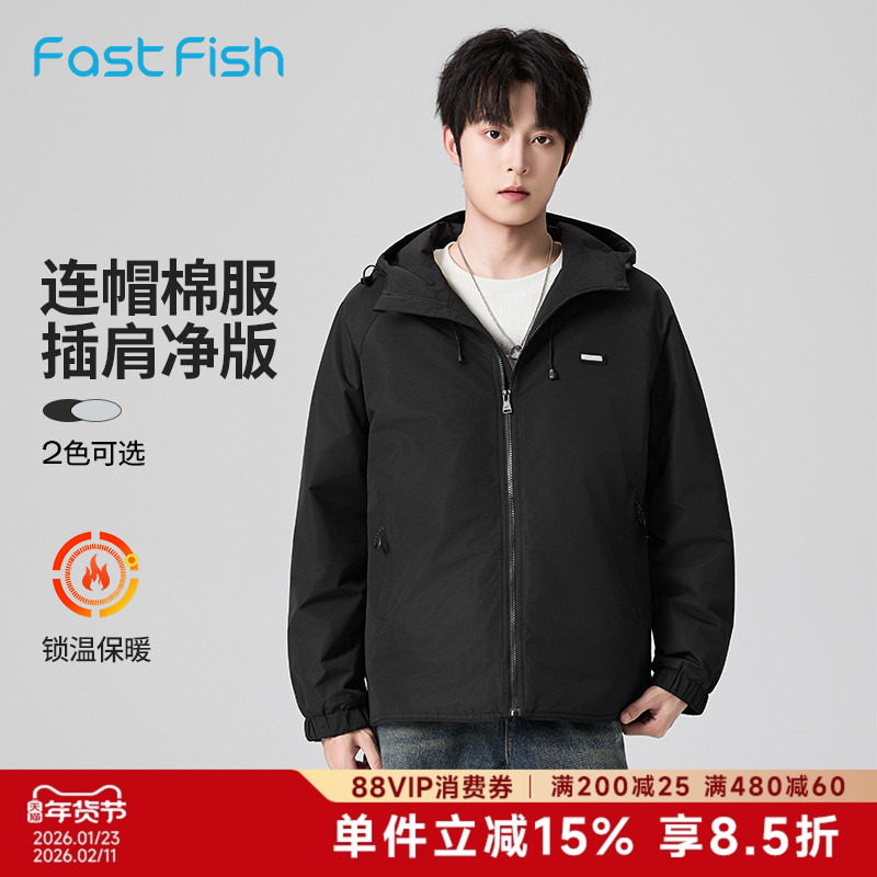 📚 快鱼立领连帽棉衣男2025年冬新款宽松插肩净版简约百搭短款棉服