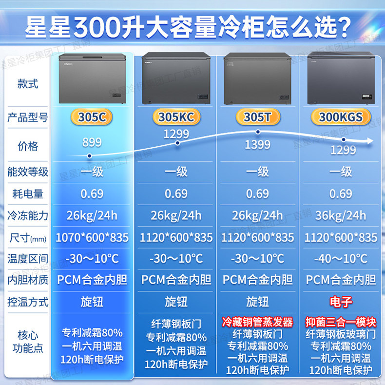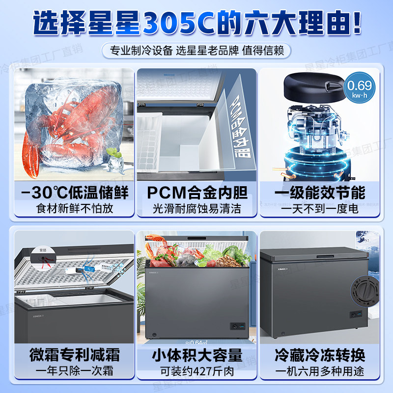 📚 星星冰柜商用305/300/200升L家用卧式冷藏冷冻大容量一级速冻冷柜