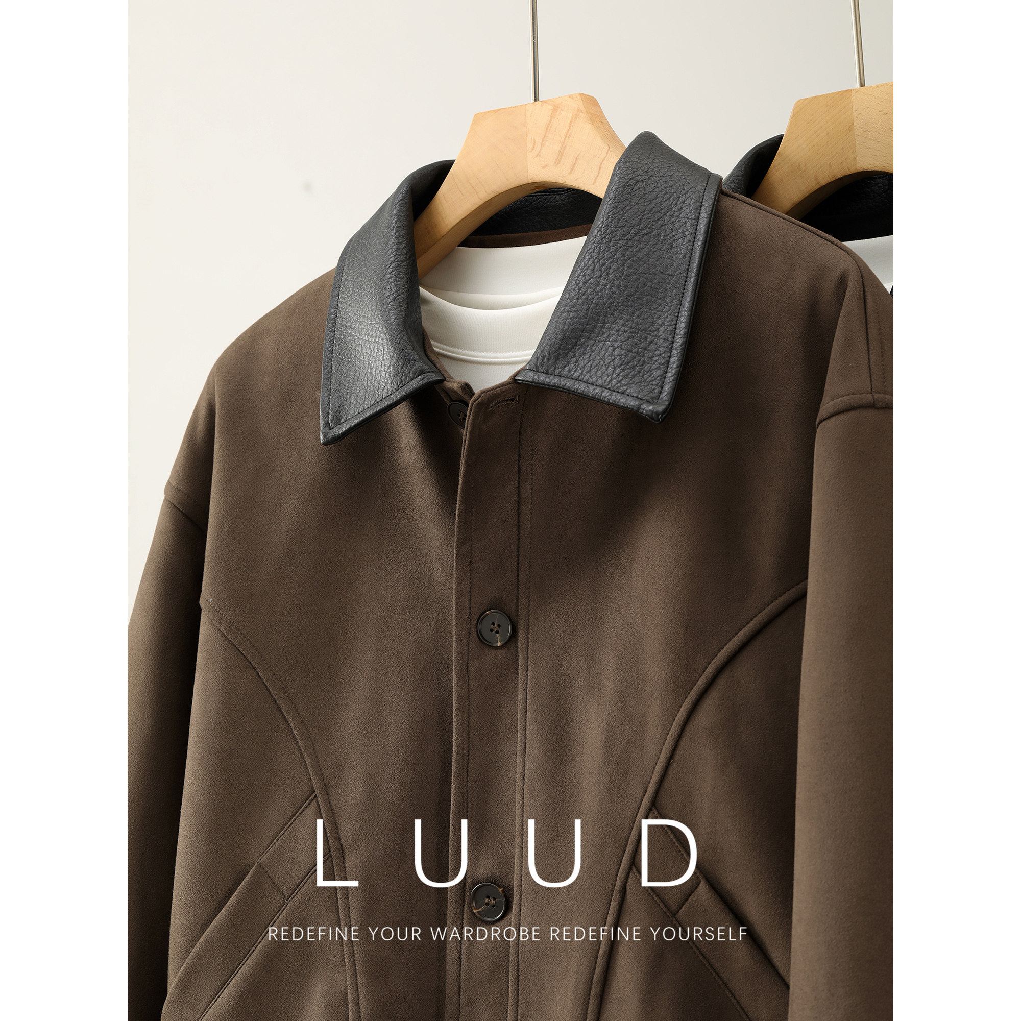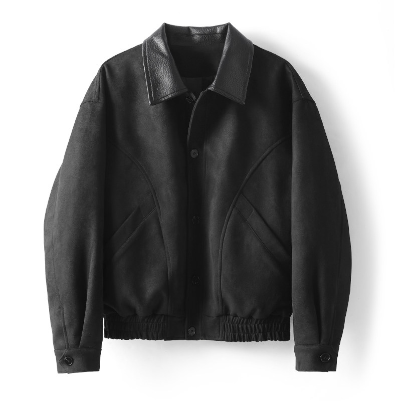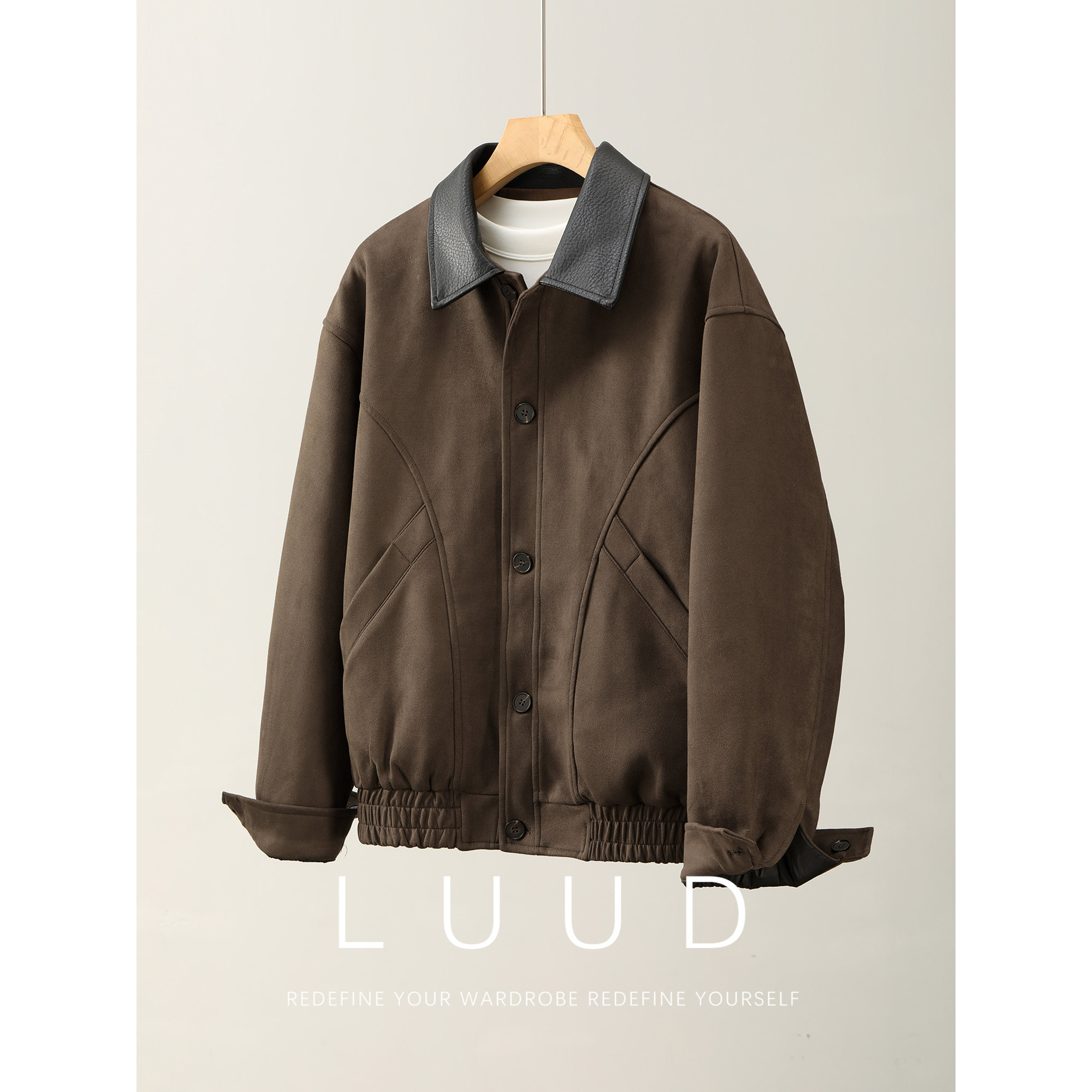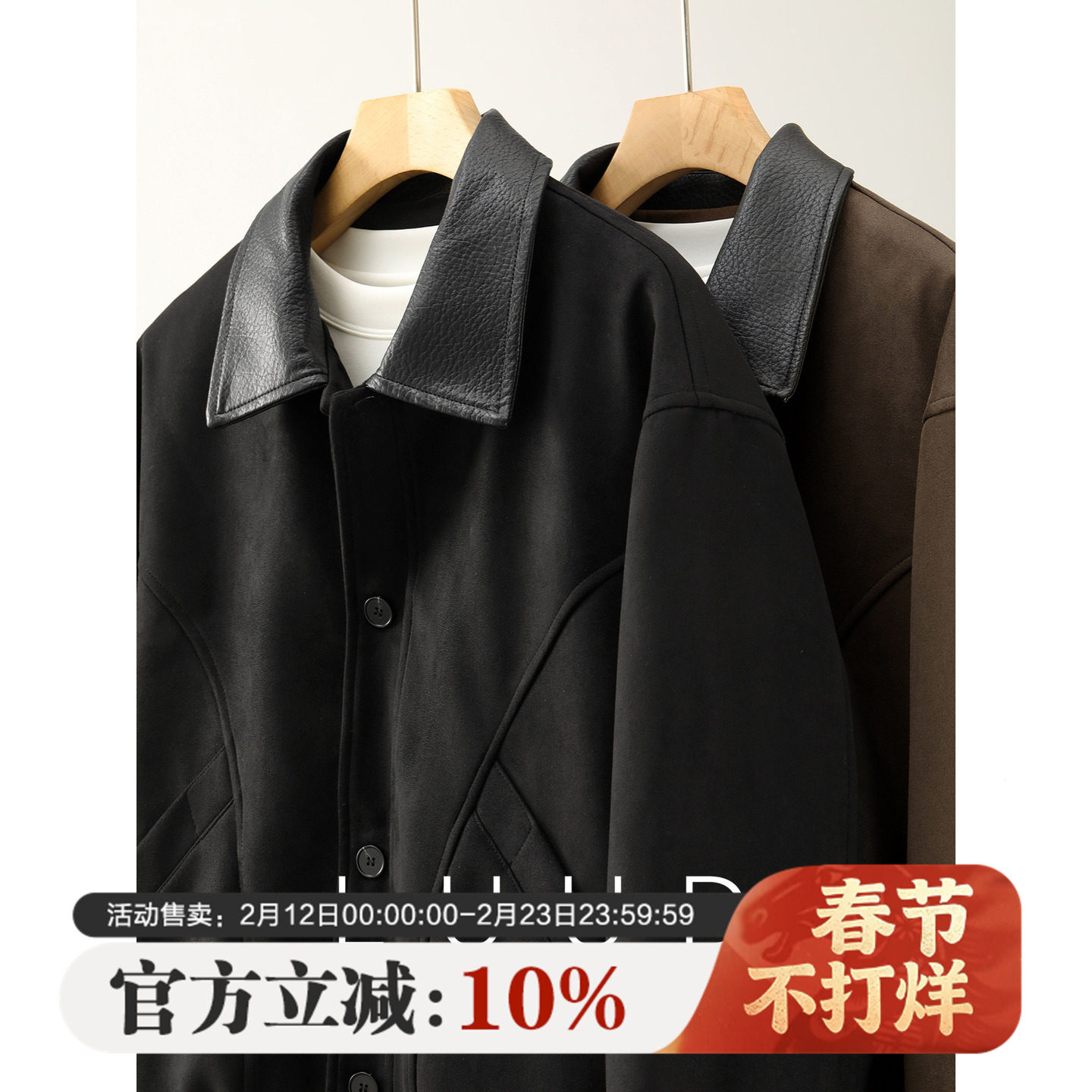 📚 特价 85白鸭绒PU皮翻领男士羽绒服外套冬季麂皮绒短宽款机车夹克
