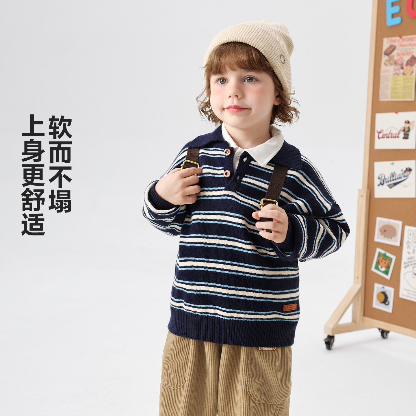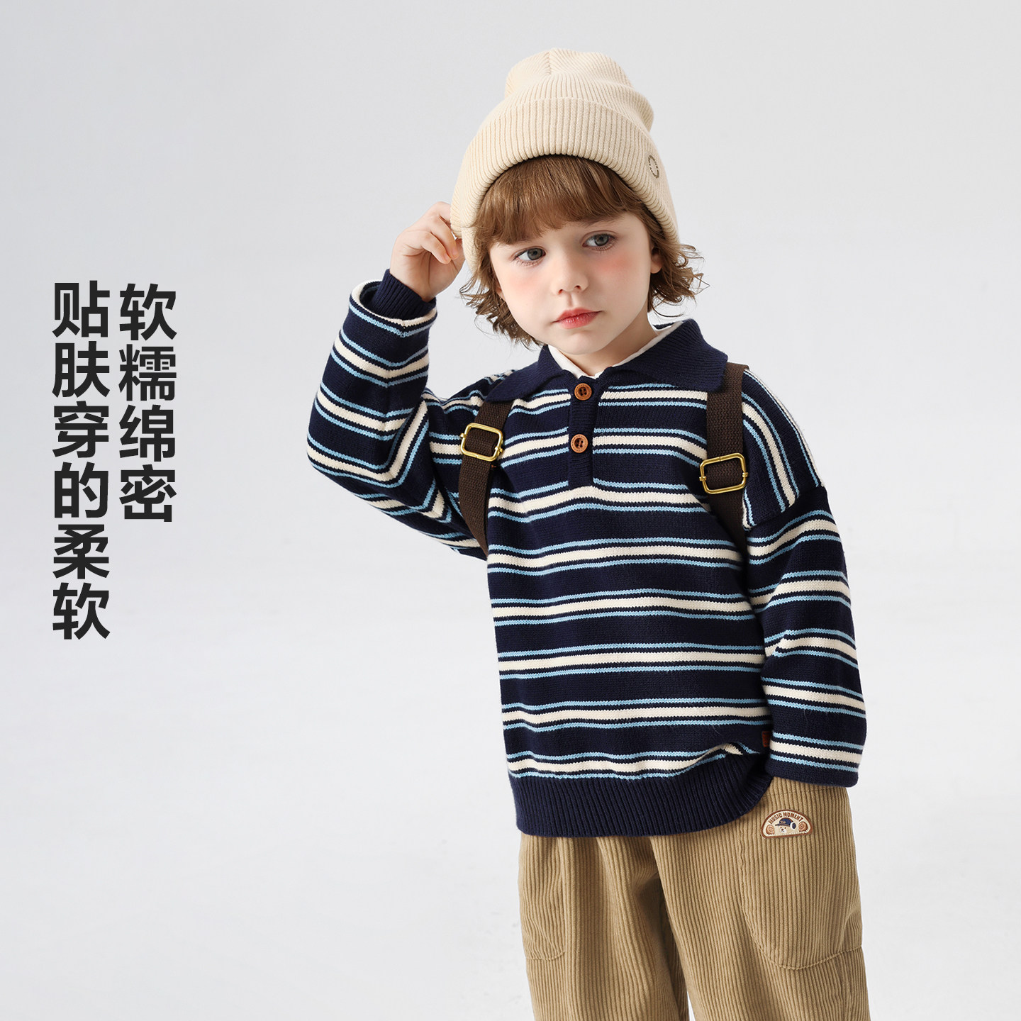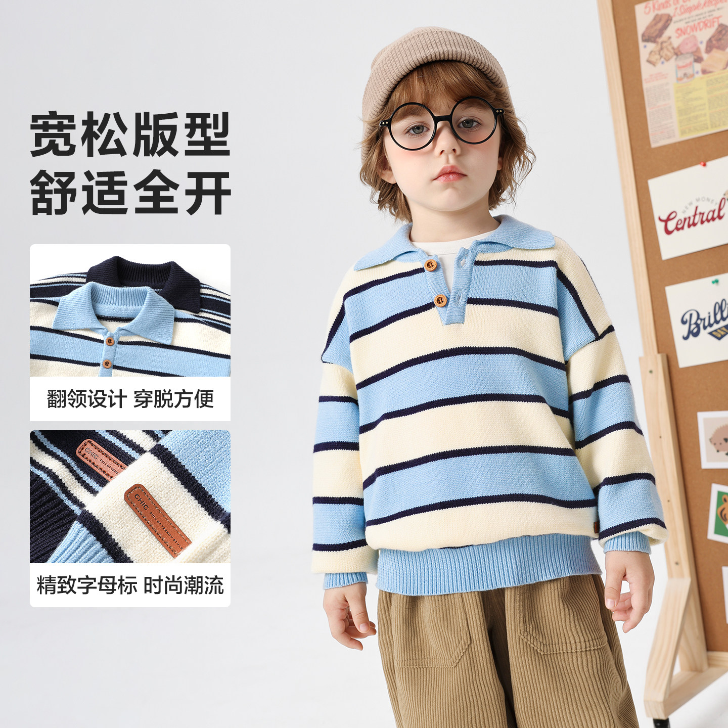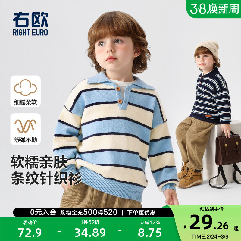 📚 右欧男童女童条纹毛衣可爱儿童针织POLO衫时髦学院秋冬季新款童装