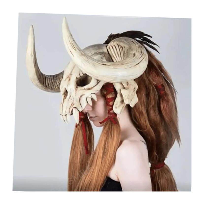 📚 Scary Animal Horn Mask Cow Head Skull Mask Halloween Horror
