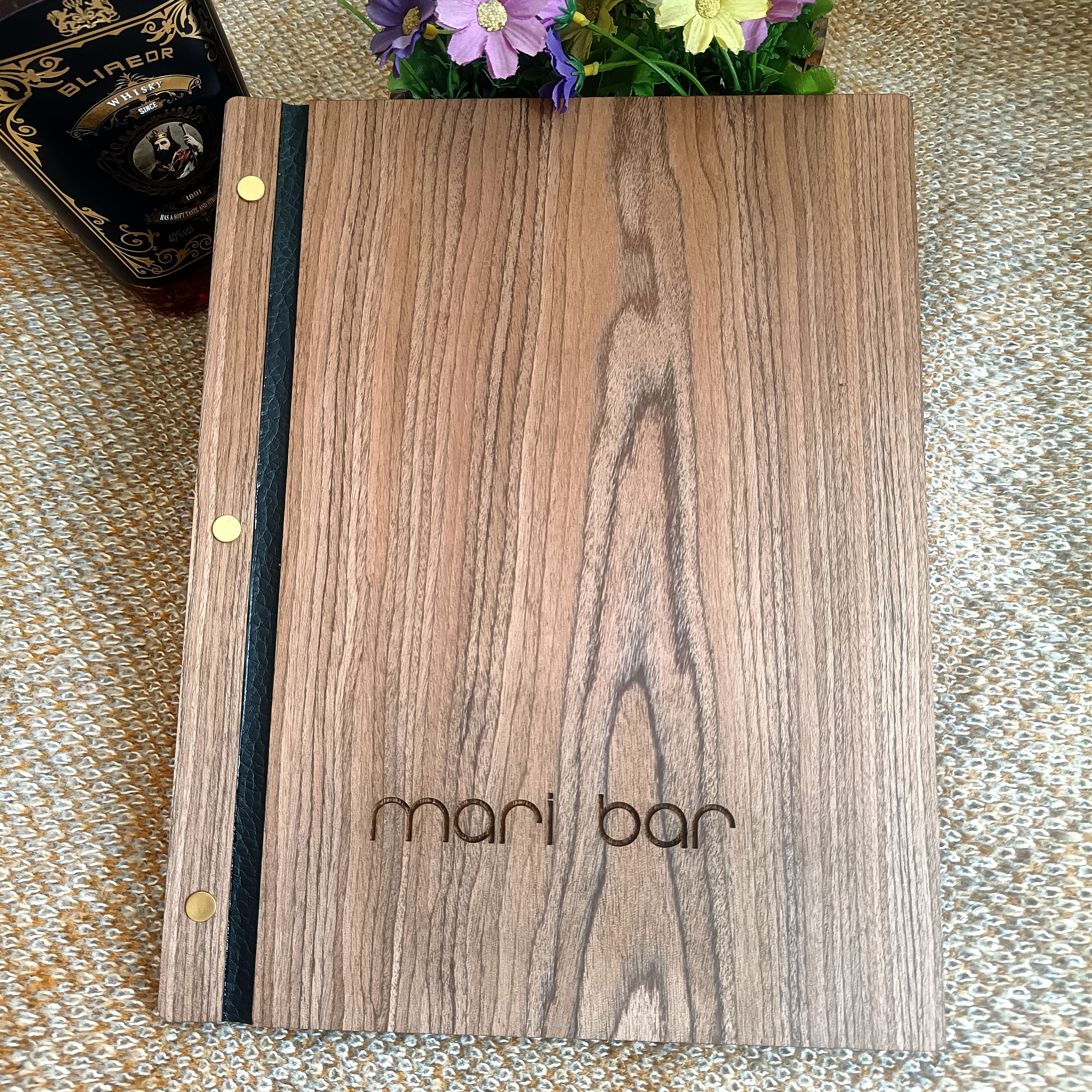 📚 复古胡桃实木合板餐牌菜单本活页防水雕刻定做餐厅酒吧咖啡馆西餐